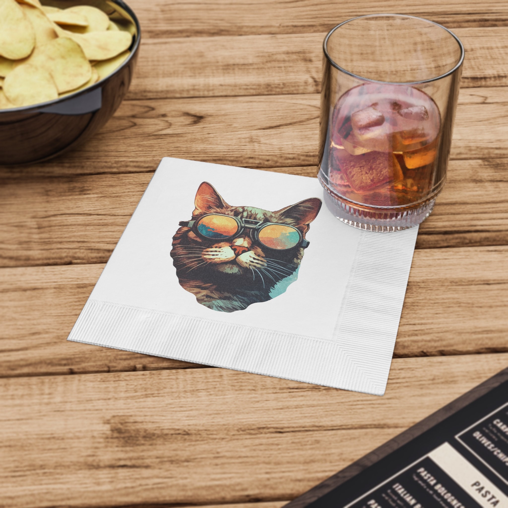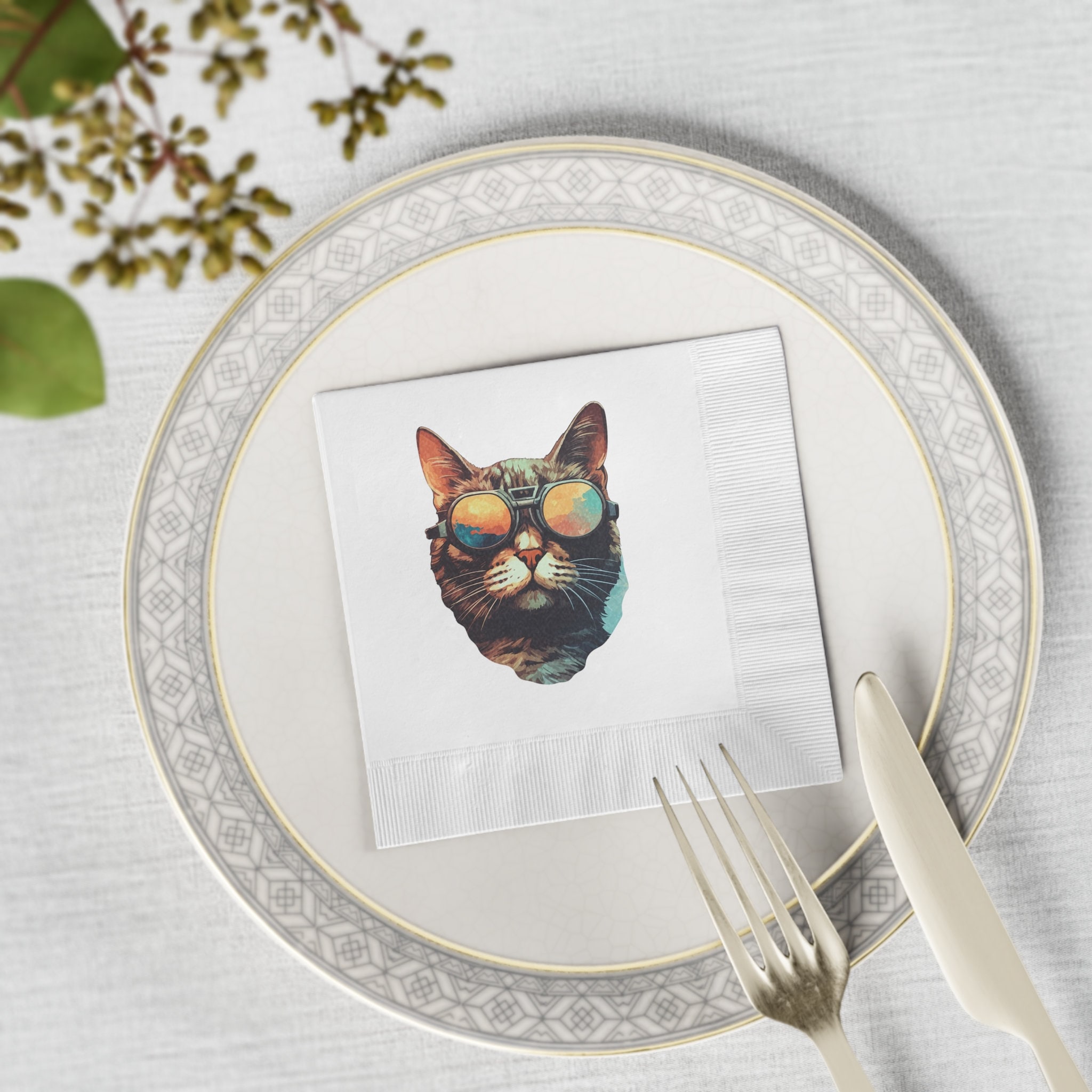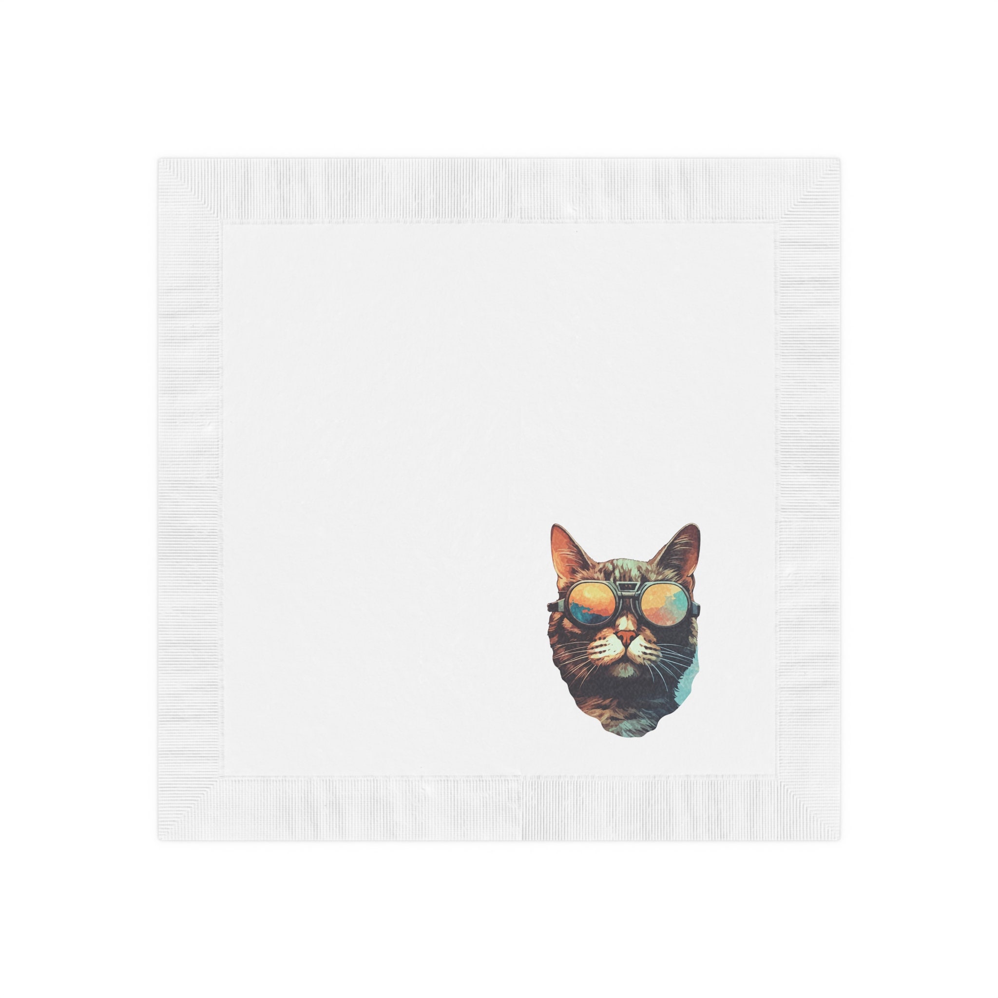 Cool Cat with Sunglasses White Coined Napkins