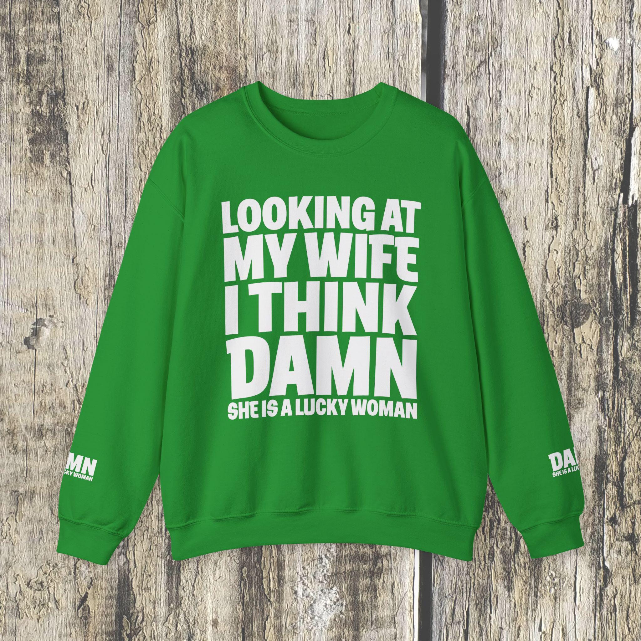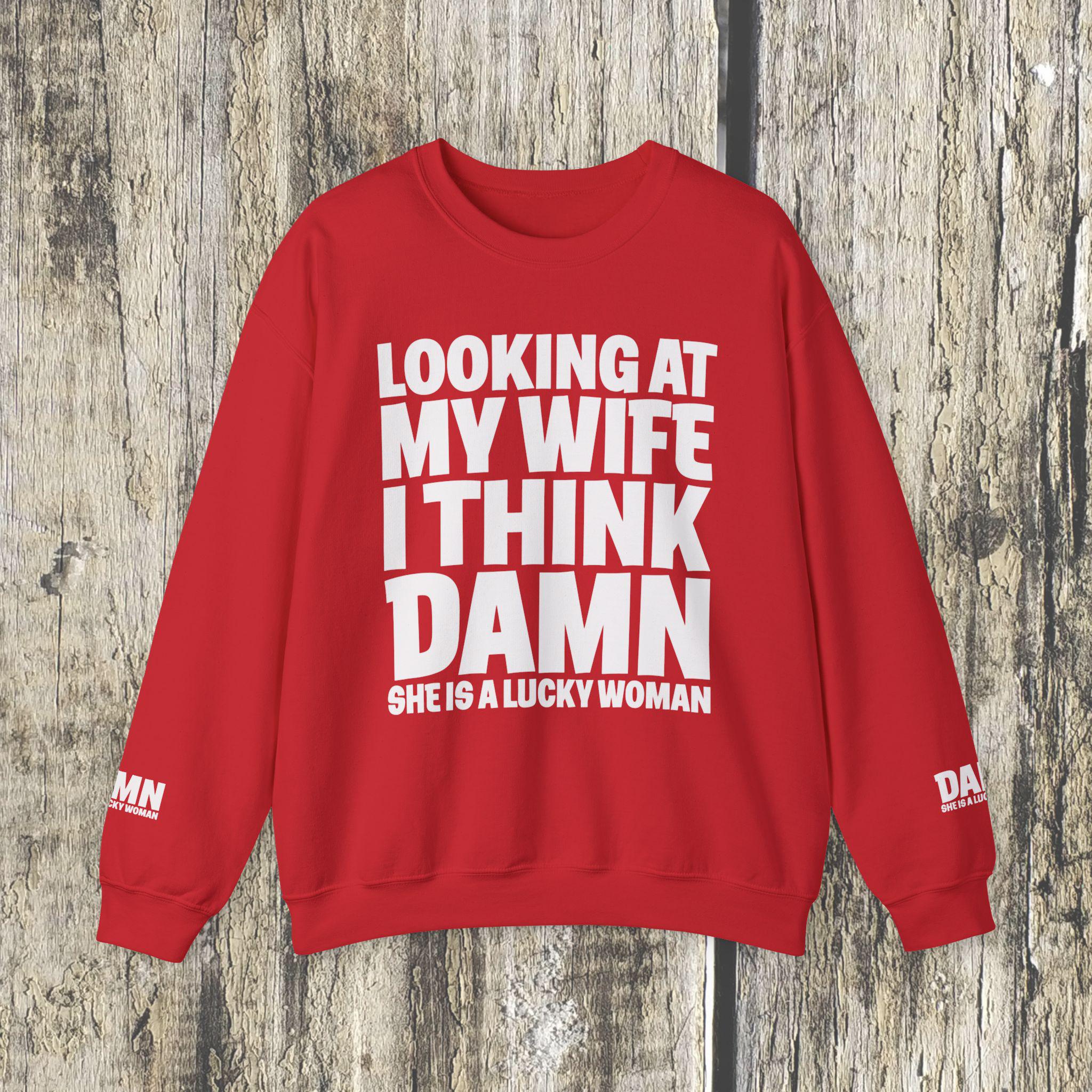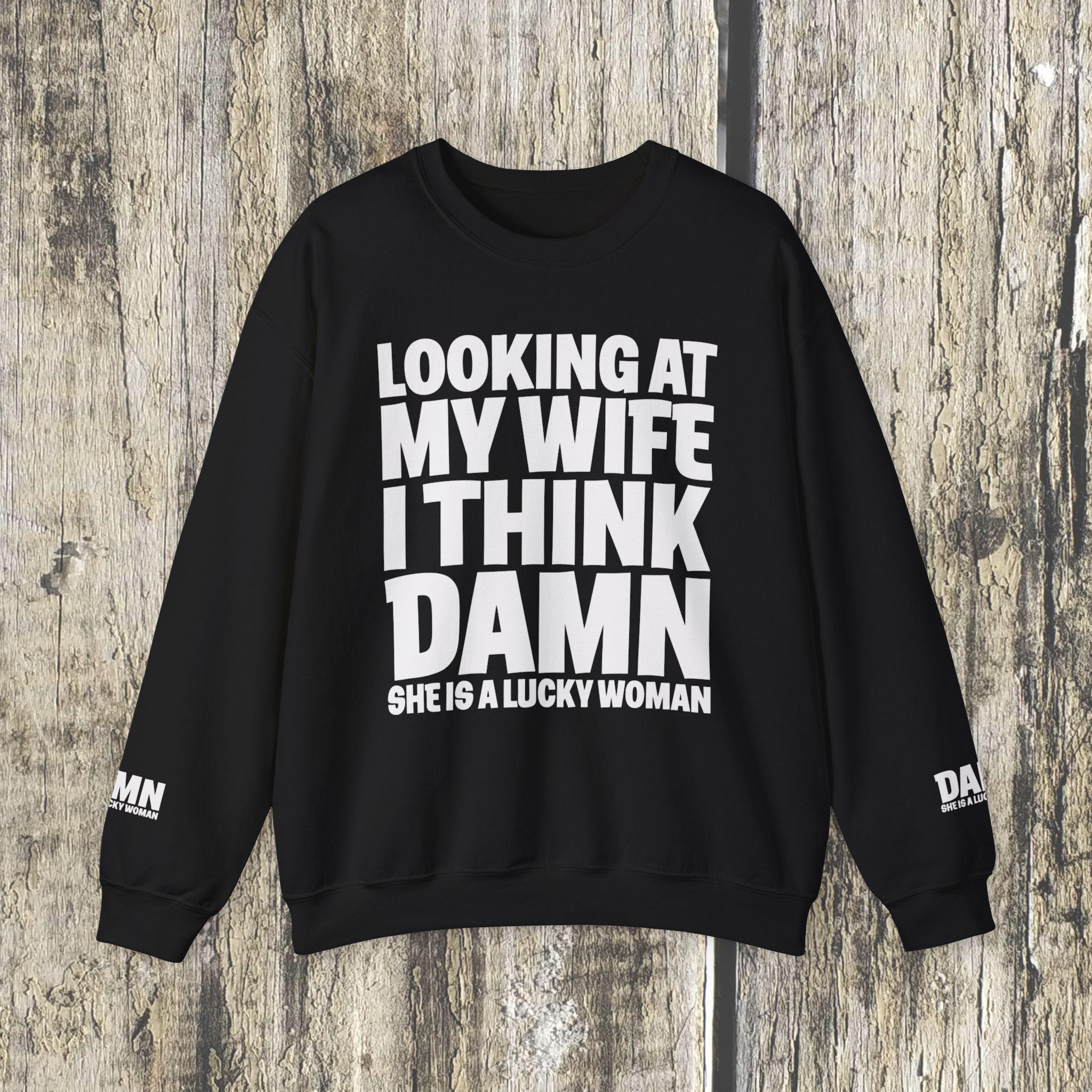 Funny Valentines Husband Quote Lucky Woman Sweatshirt | Husband Wife Love