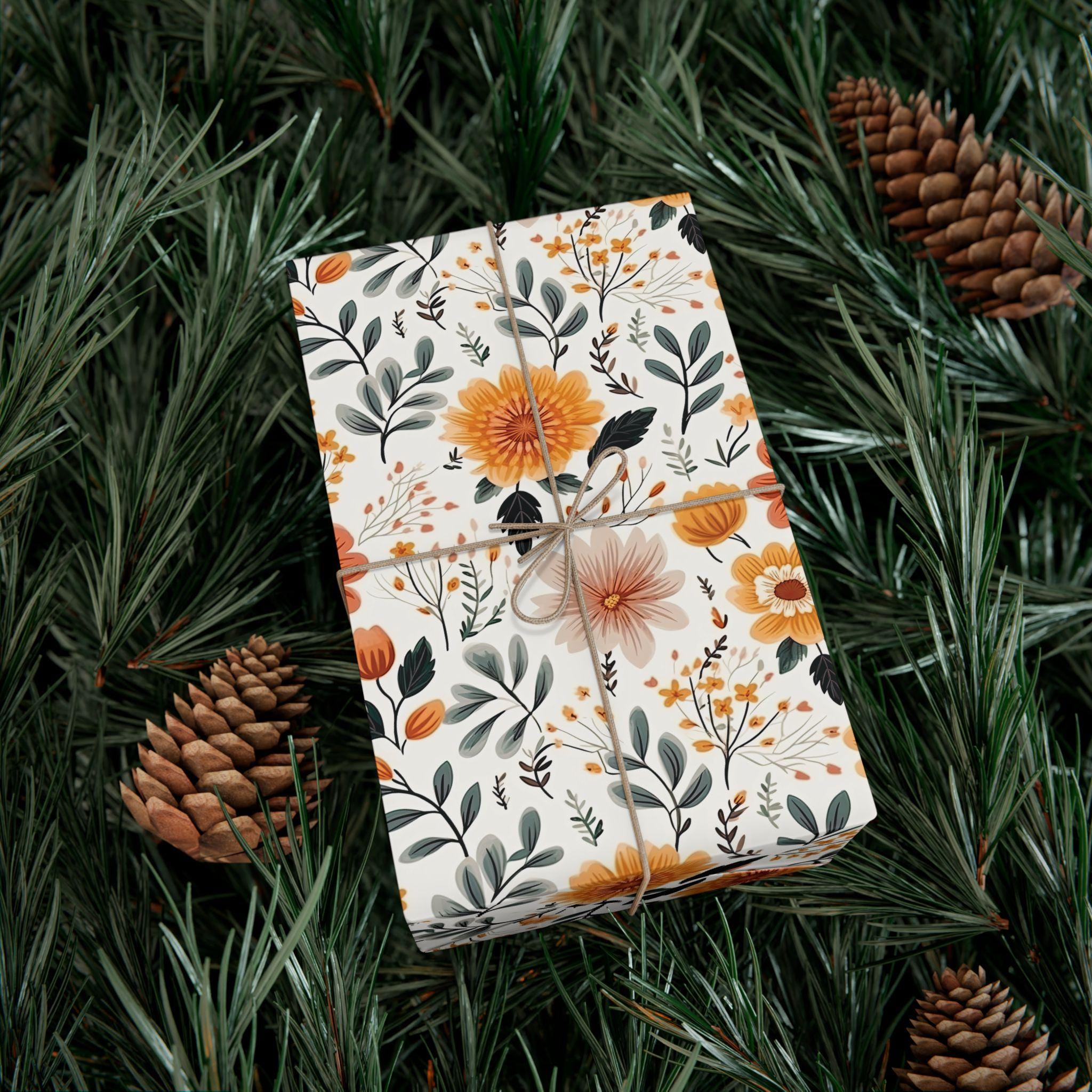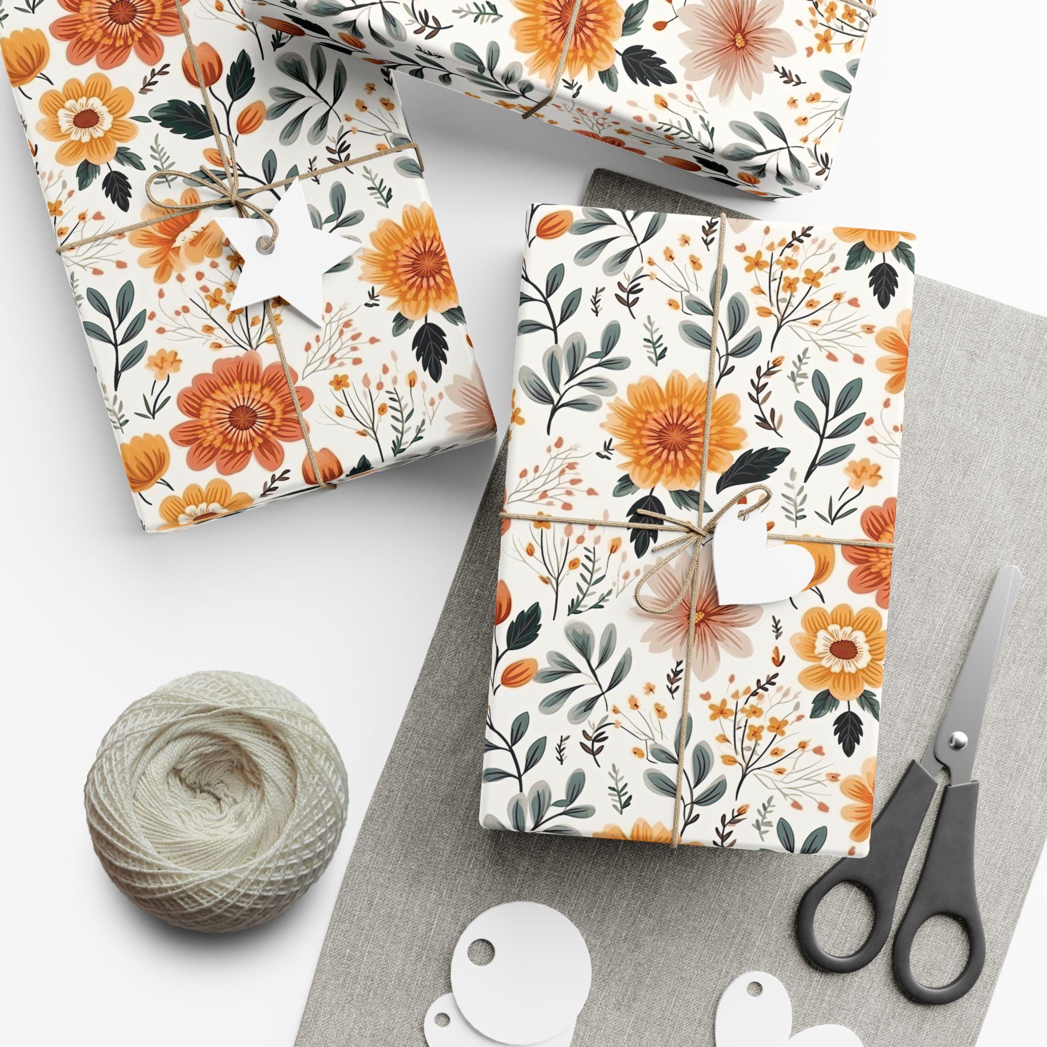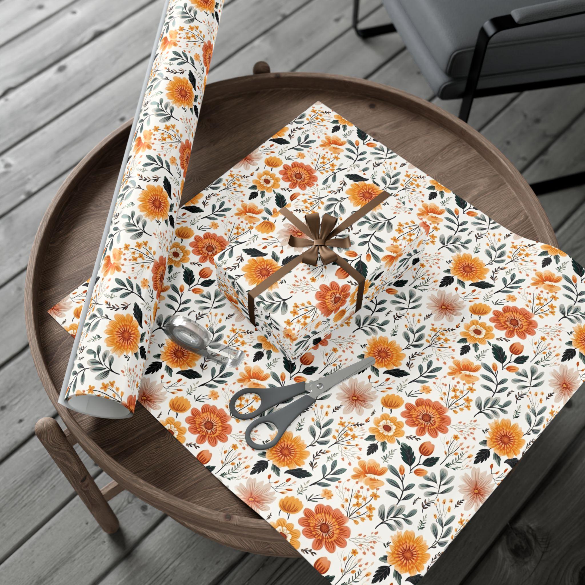 Gift Wrap Papers, Autum Floral Wrapping Sheets, Fall Flower Patterns, Thanksgiving Gift Packaging, Christmas Wraps, Birthday Present Paper