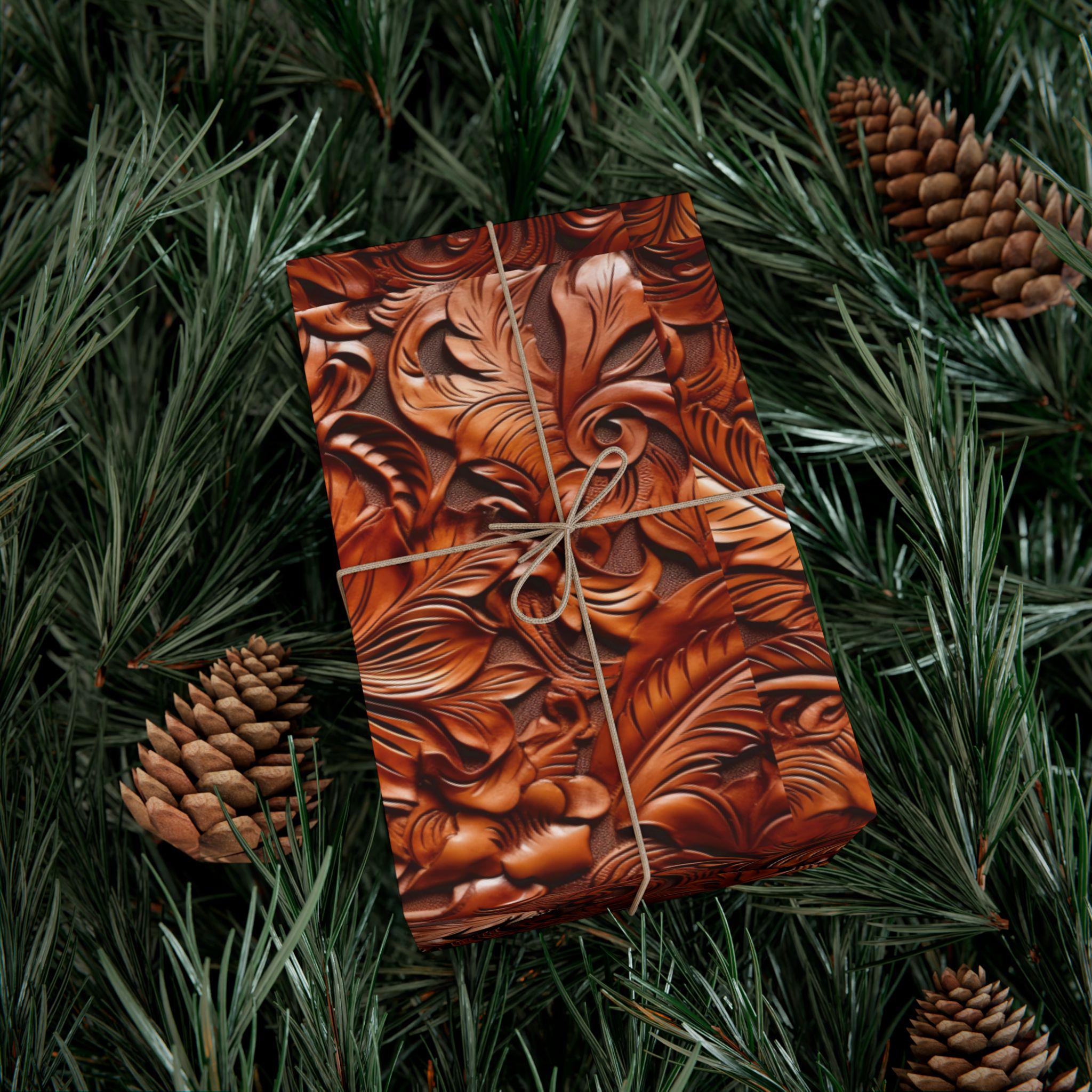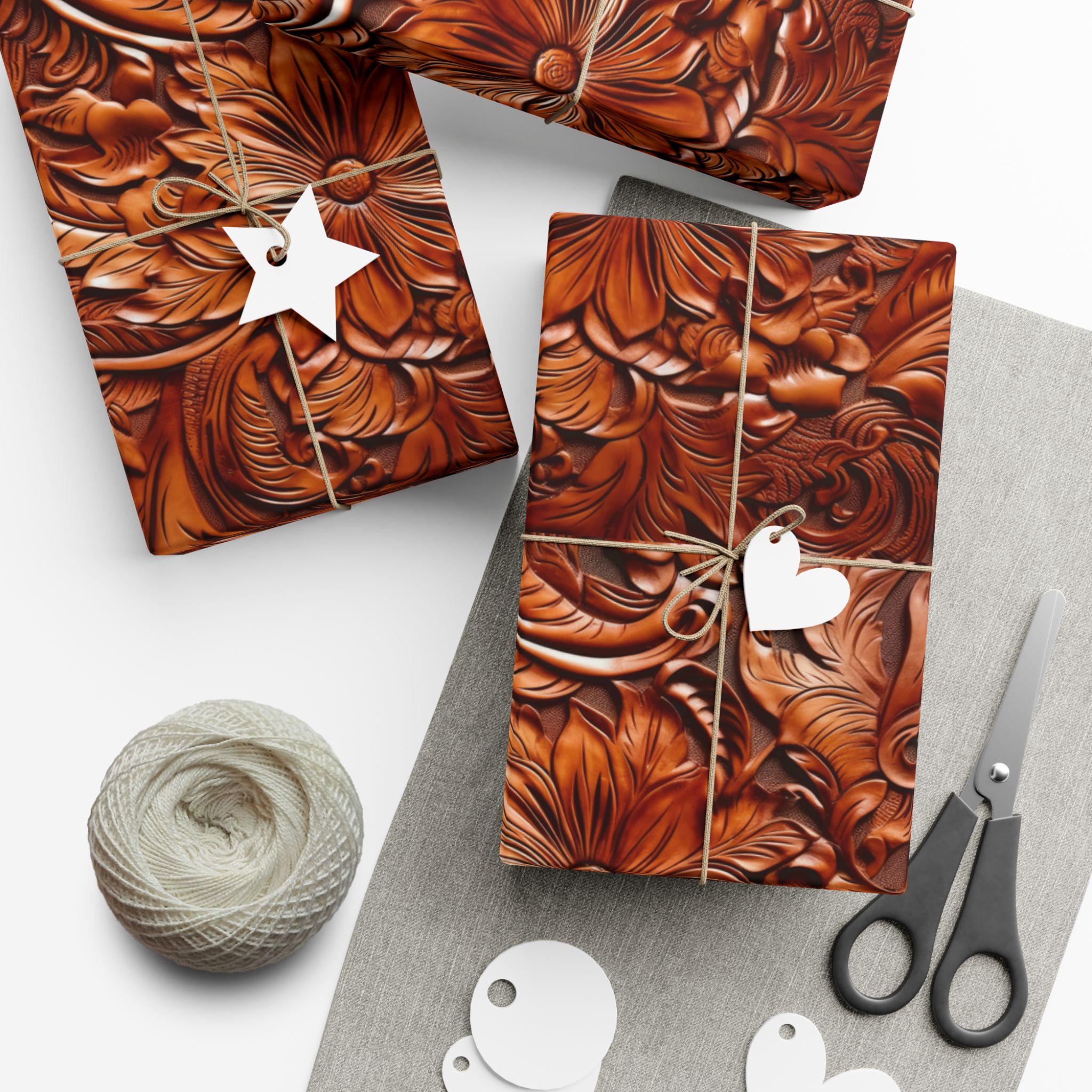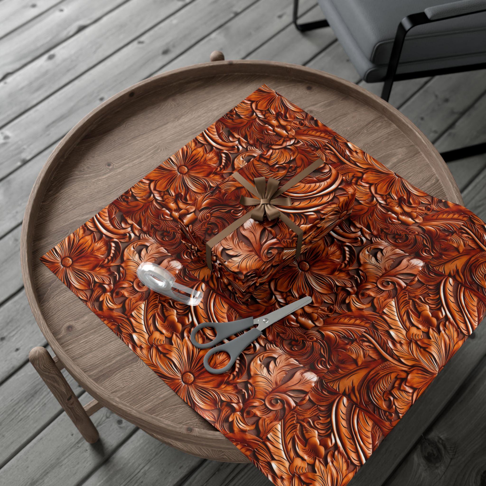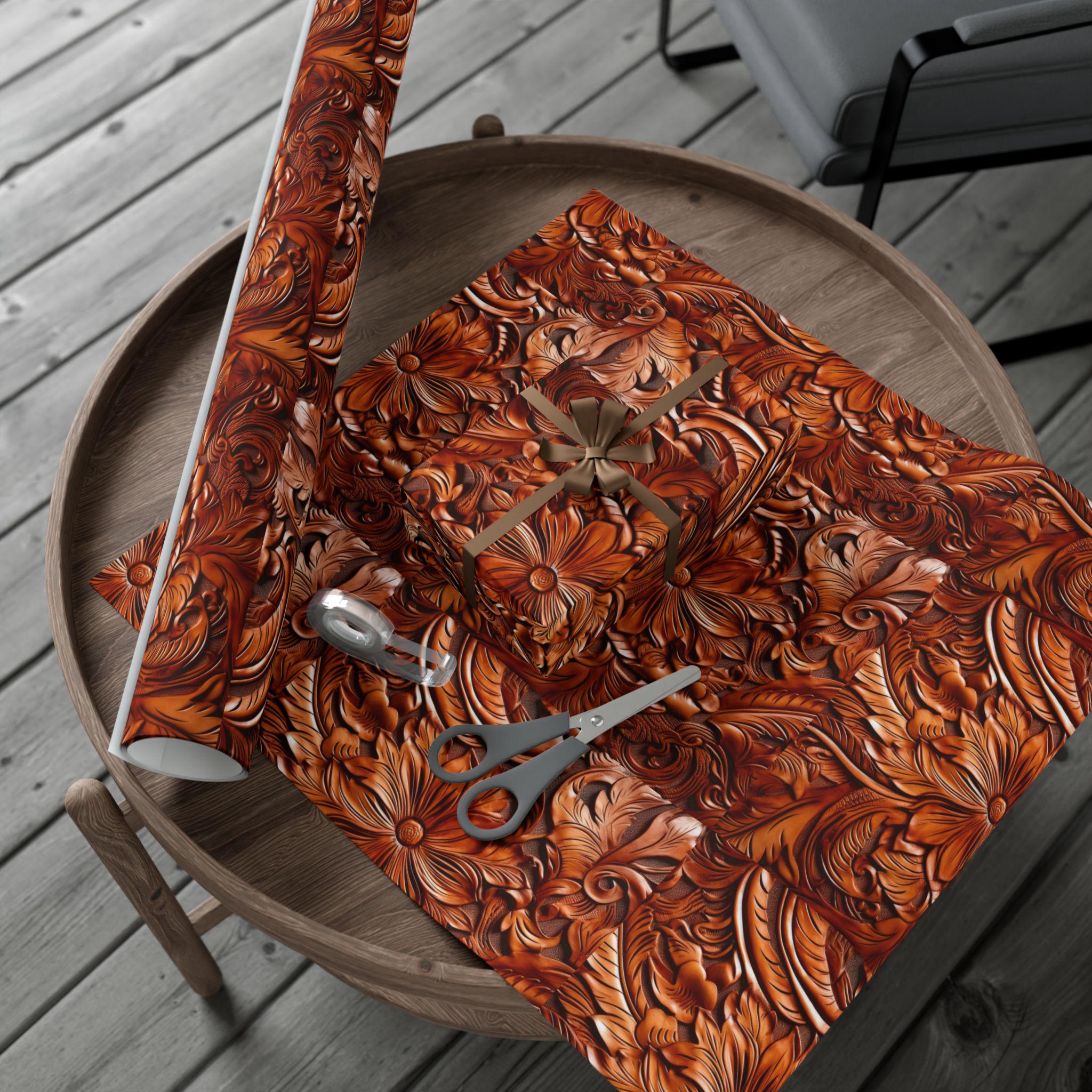 Gift Wrap Papers, Cowboy Gift Wrapping Paper Roll, Western Tooled Leather Design, Holiday Wrapping Paper, Gift Wrap Supplies, Unique Gift