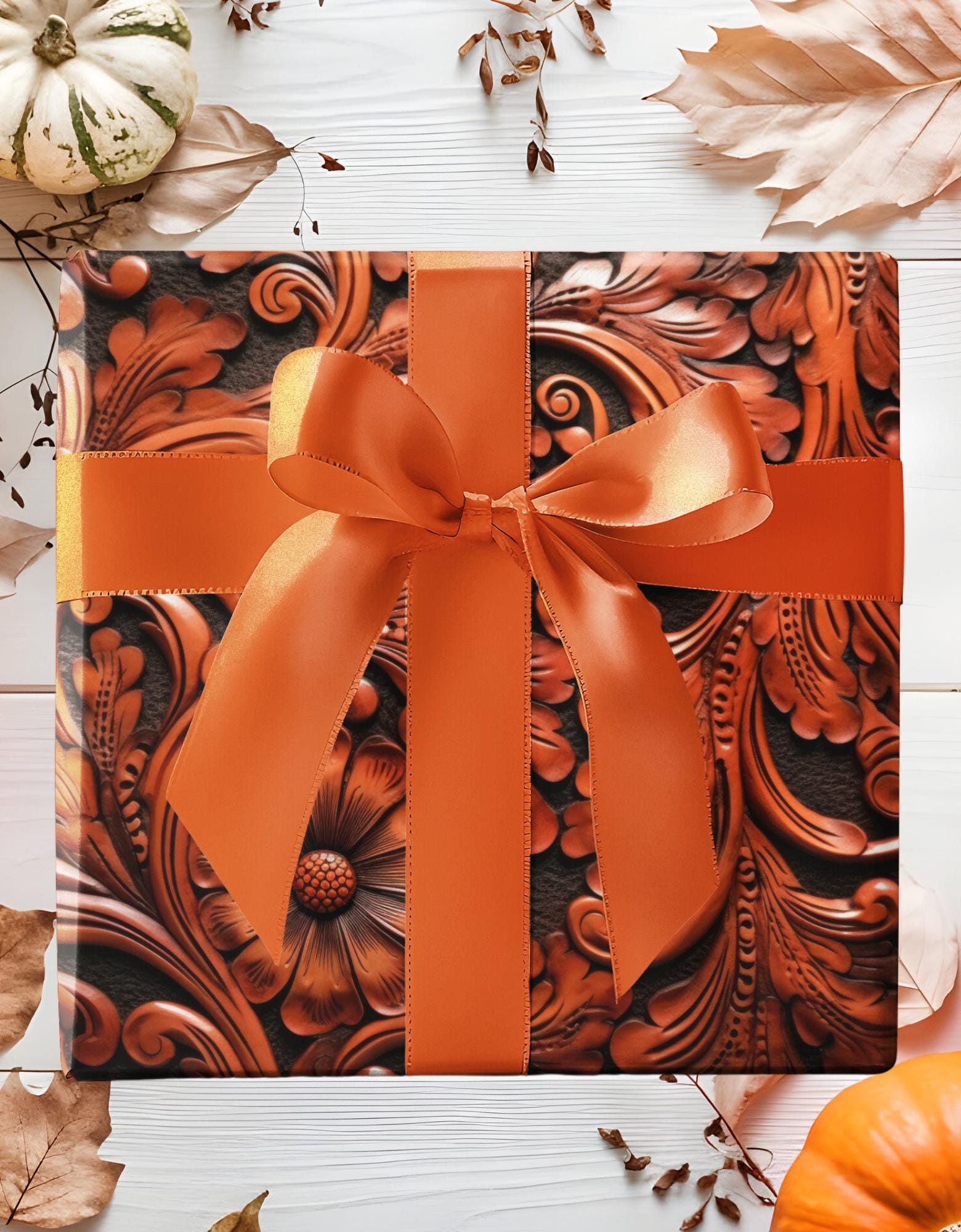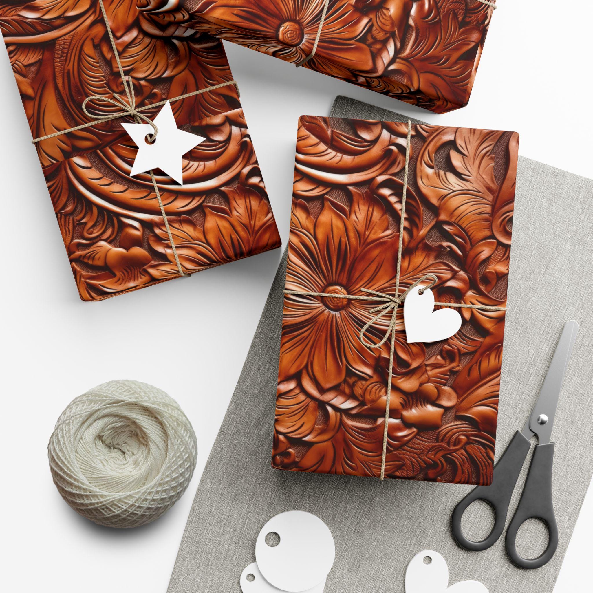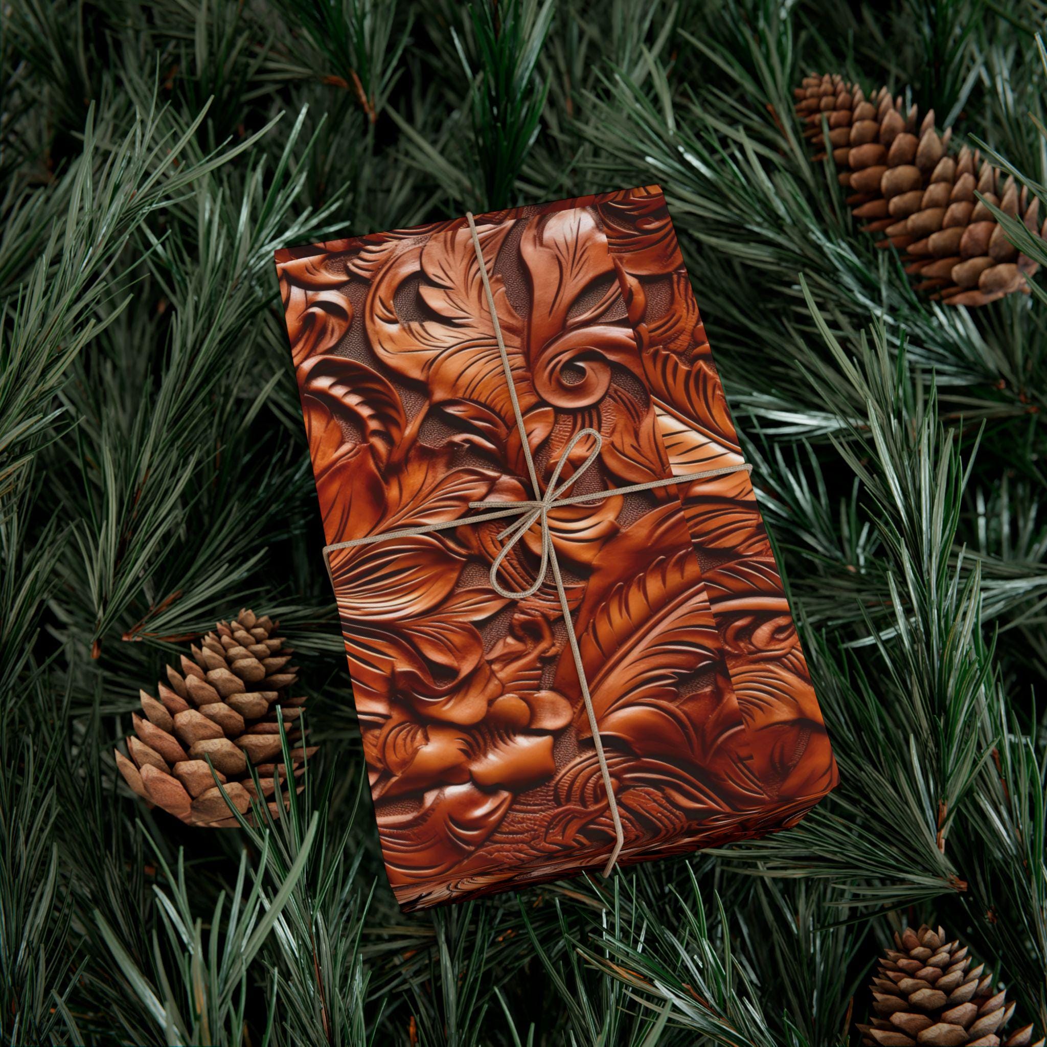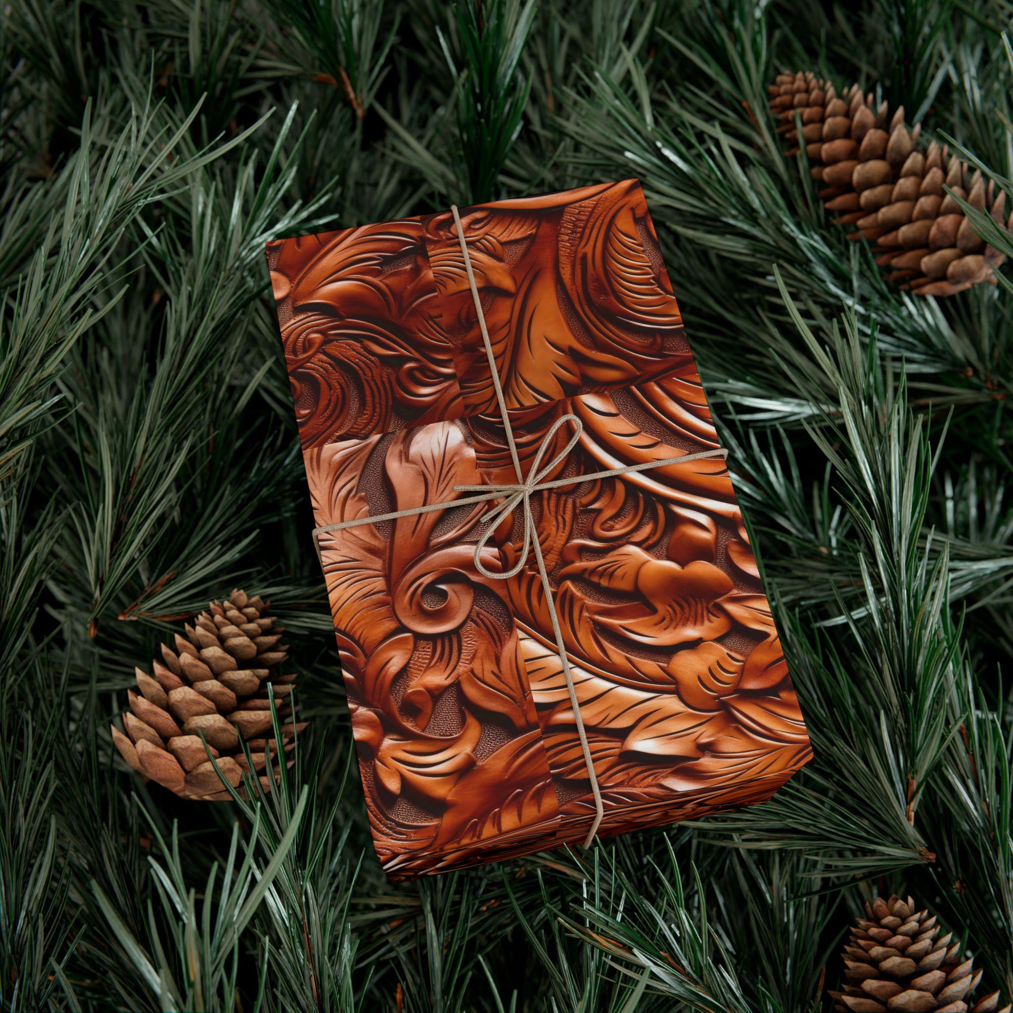 Gift Wrap Papers, Cowboy Gift Wrapping Paper Roll, Western Tooled Leather Design, Holiday Wrapping Paper, Gift Wrap Supplies, Unique Gift
