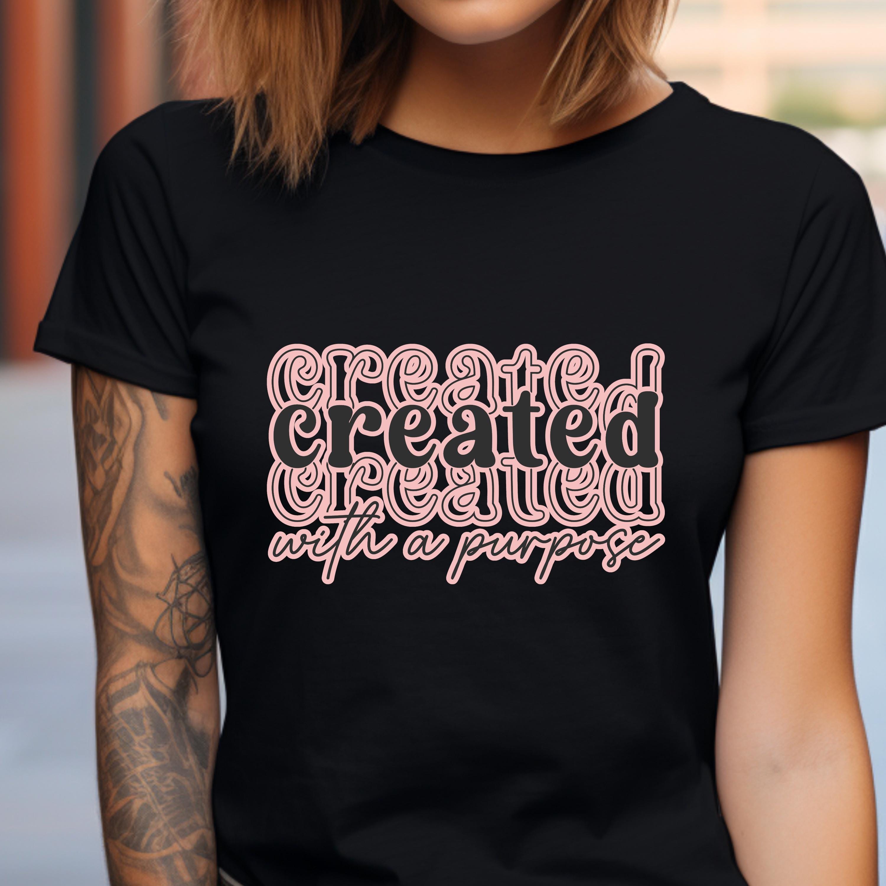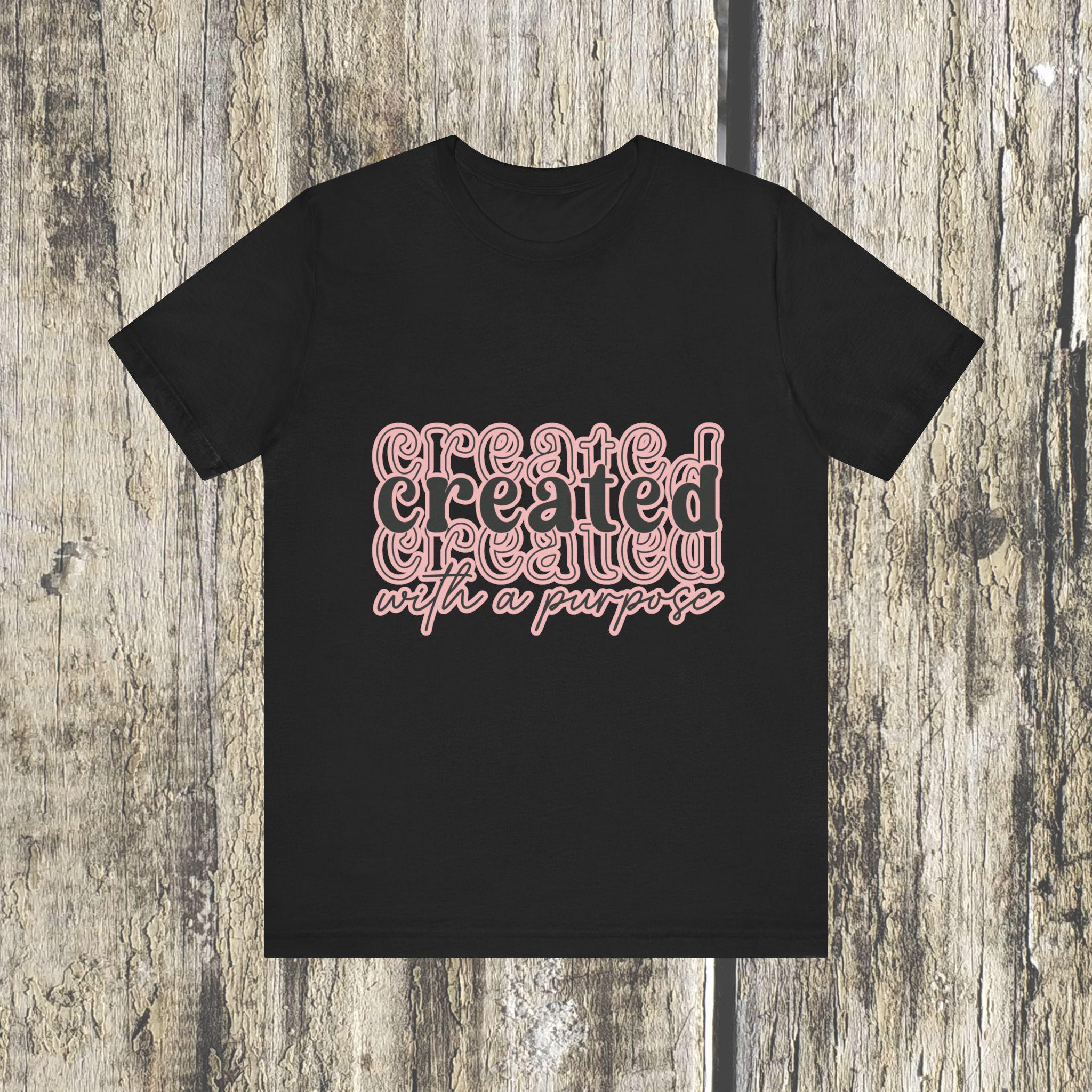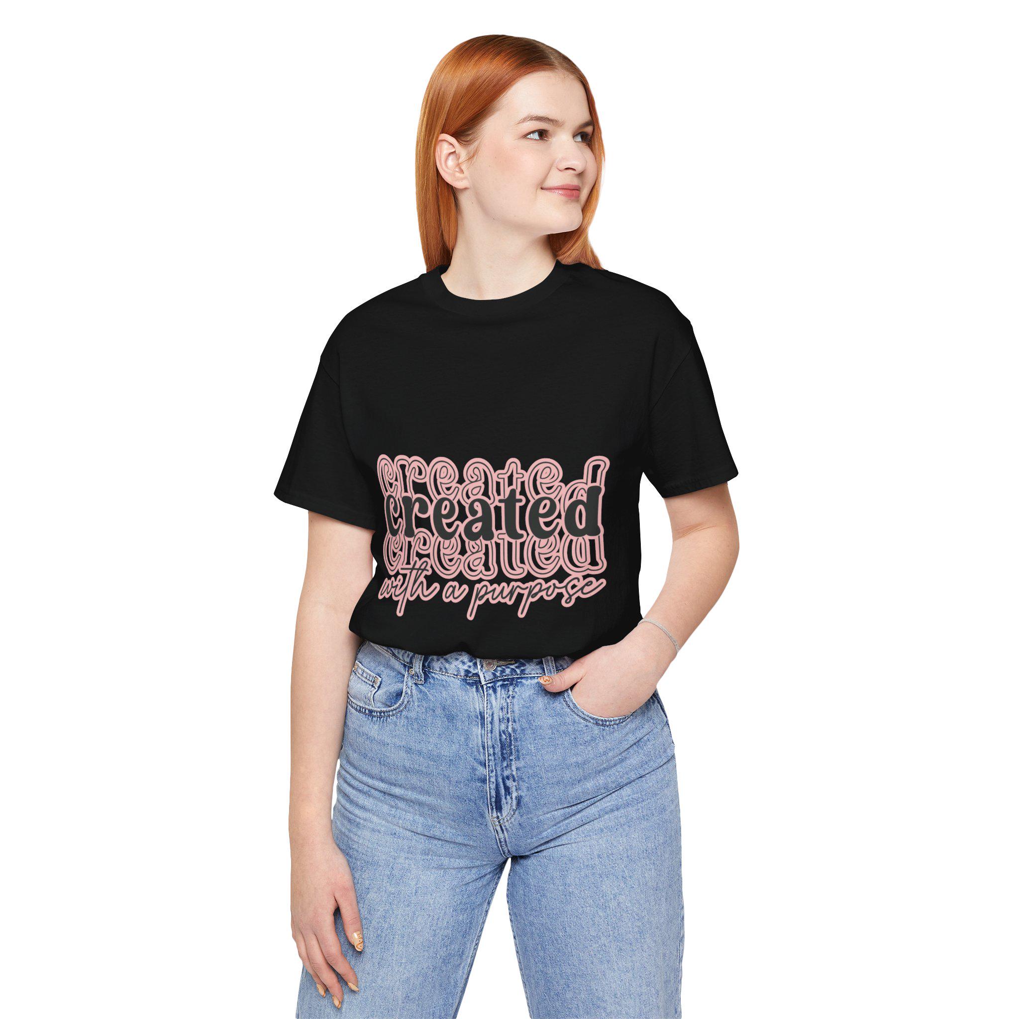 Created with a Purpose Pink outlined-Unisex Jersey Short Sleeve Tee