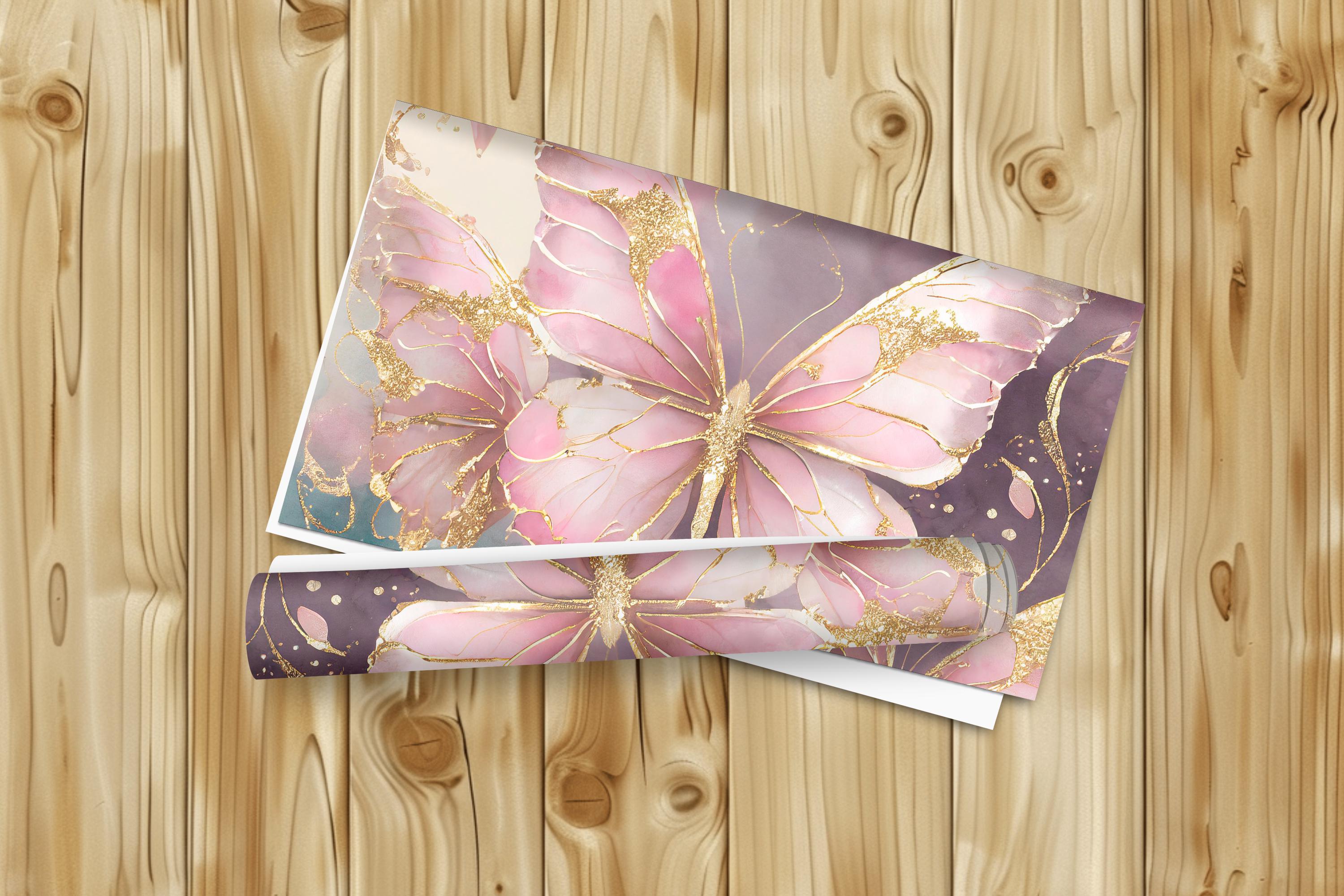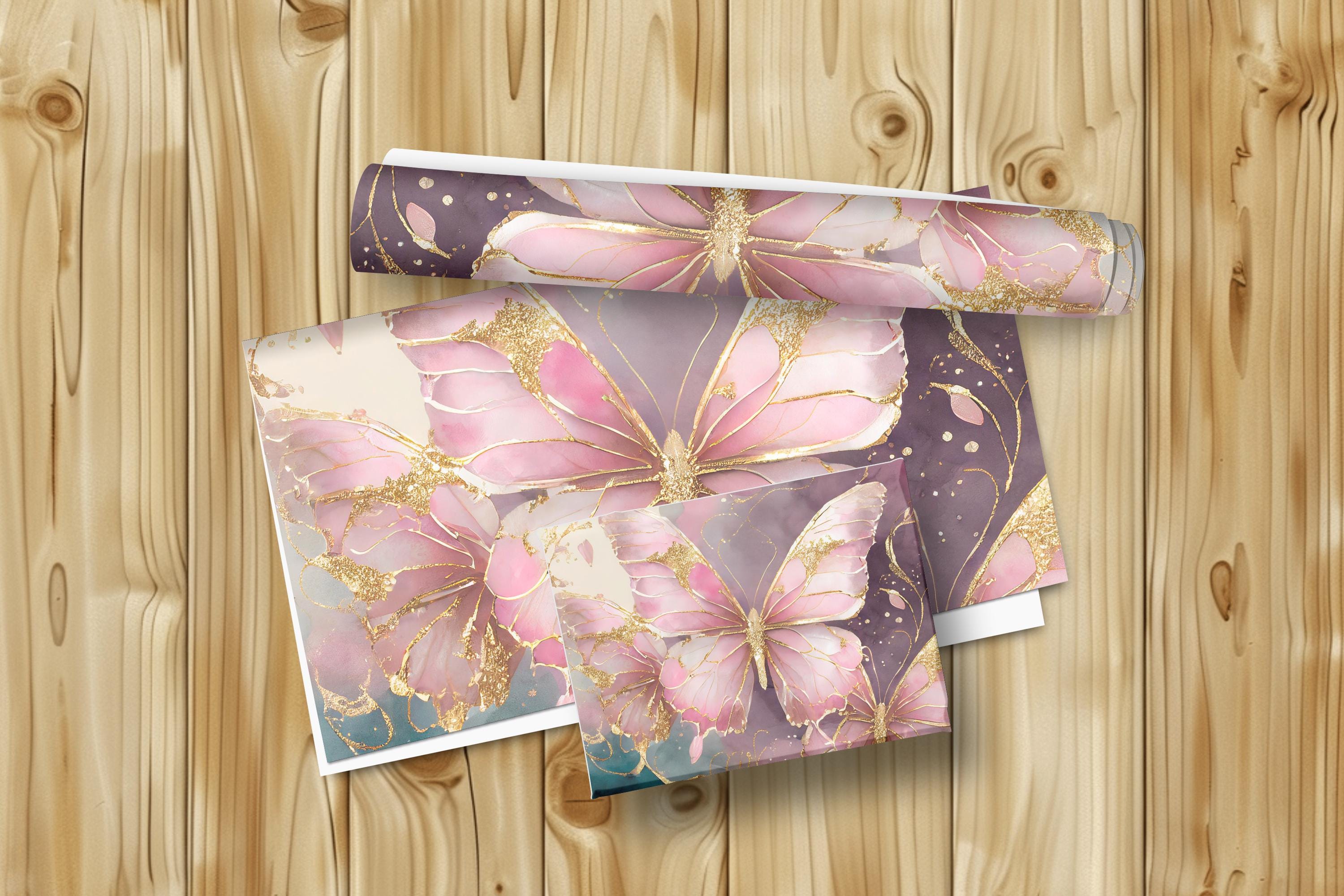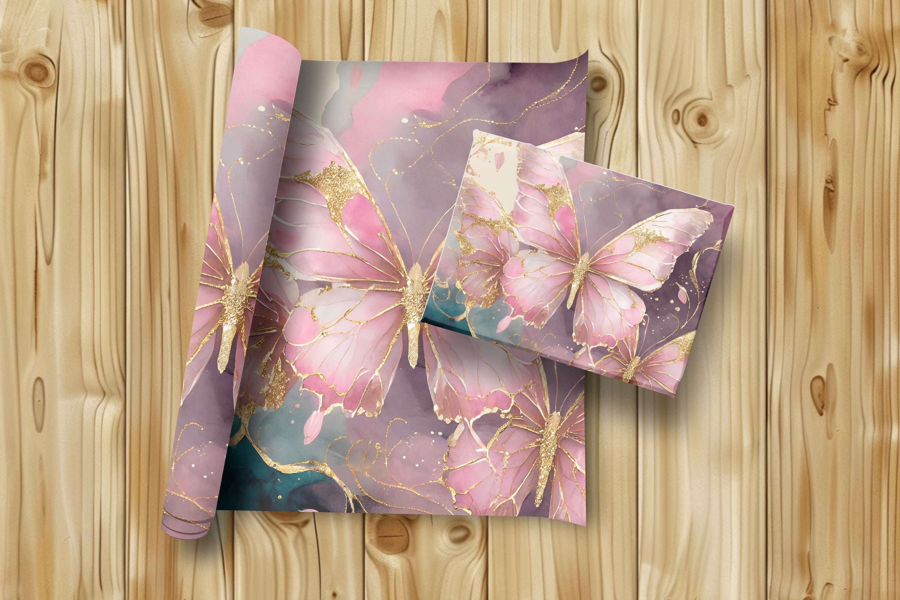 Purple, Elegant wrapping papers featuring a pretty butterfly graphic with gold sprinkles, lavender, and purple colors. Perfect for adding a touch of sophistication to any gift-giving occasion. Ideal for those who love to make their presents stand out.
