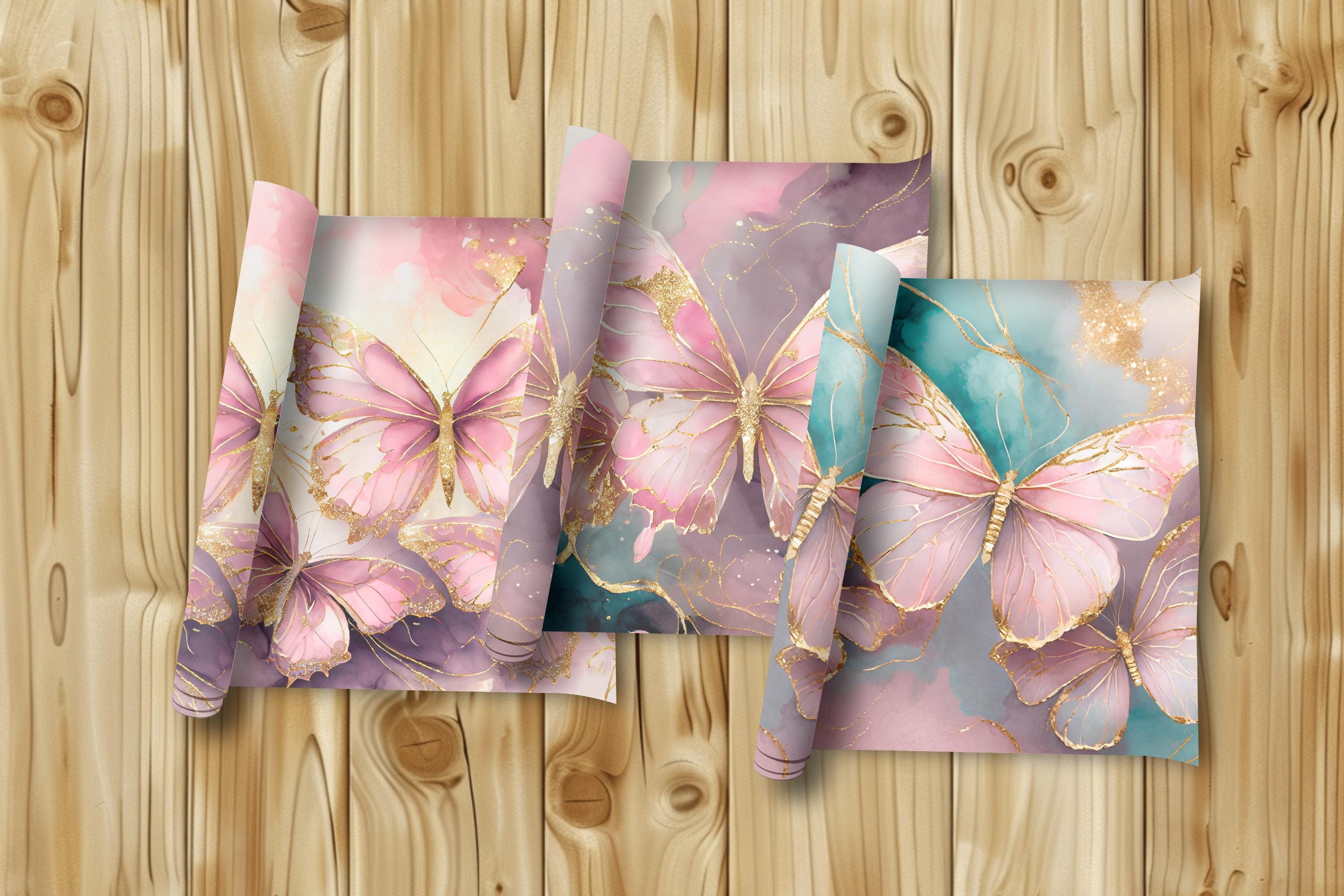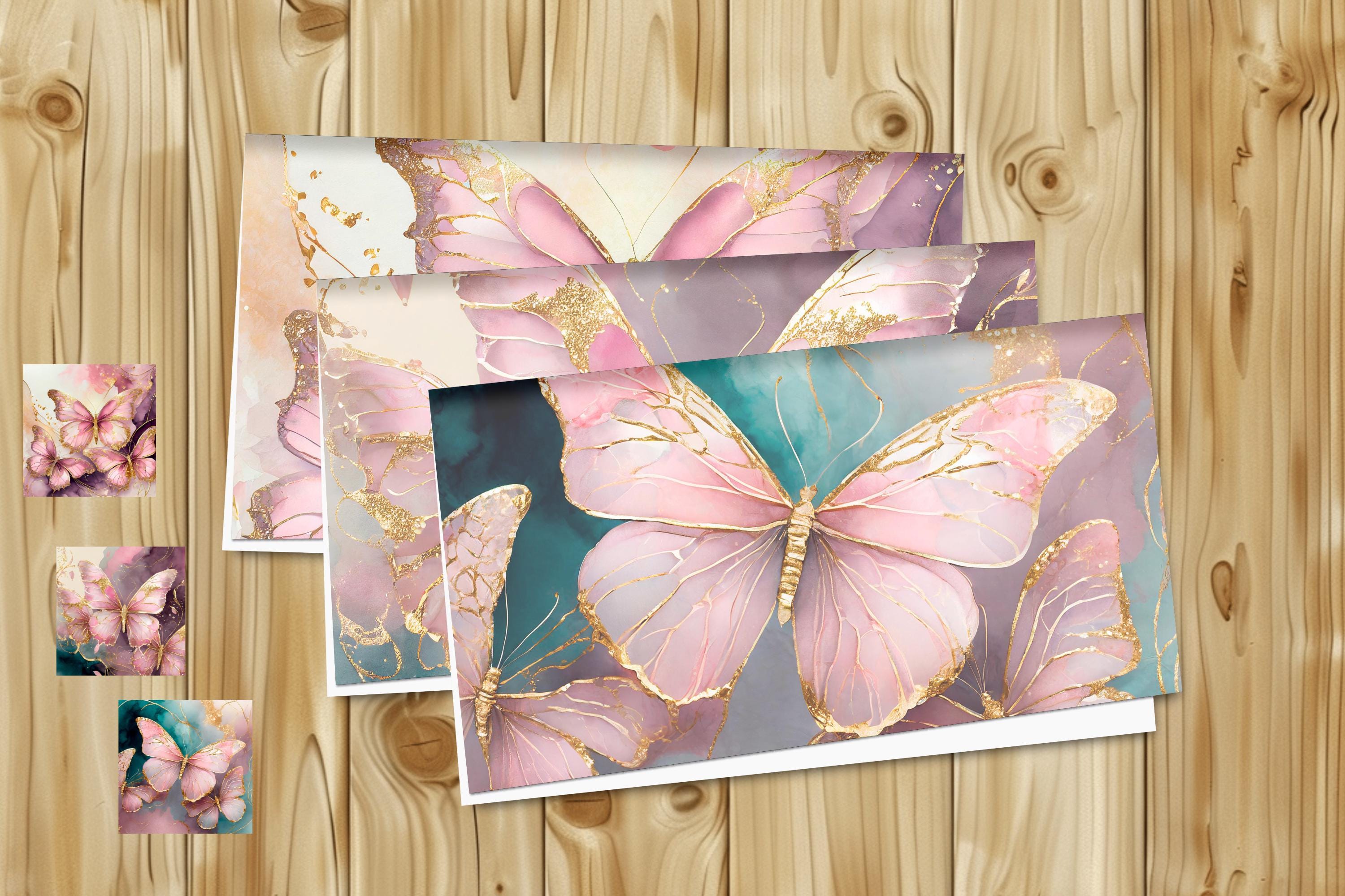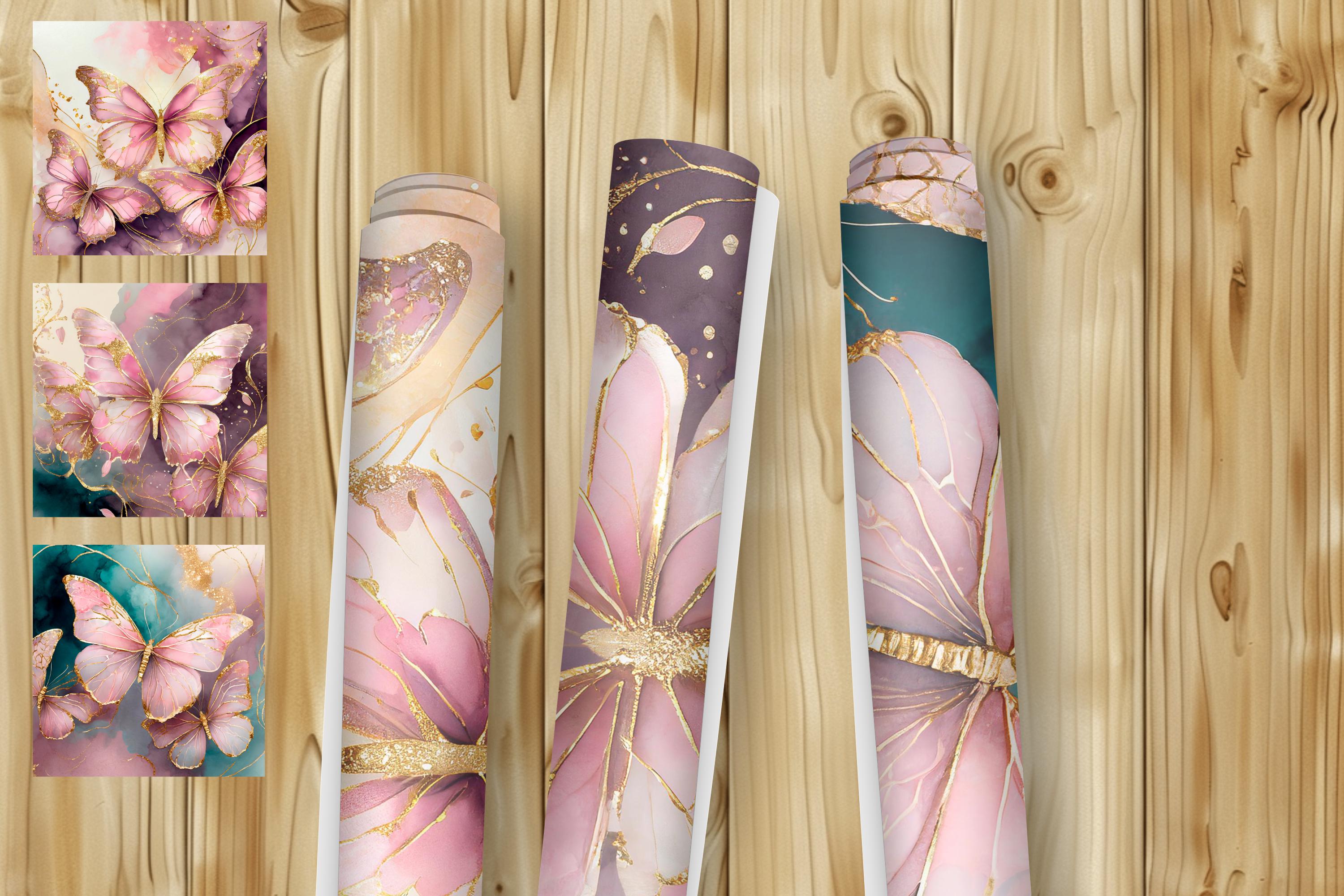 Purple, Elegant wrapping papers featuring a pretty butterfly graphic with gold sprinkles, lavender, and purple colors. Perfect for adding a touch of sophistication to any gift-giving occasion. Ideal for those who love to make their presents stand out.