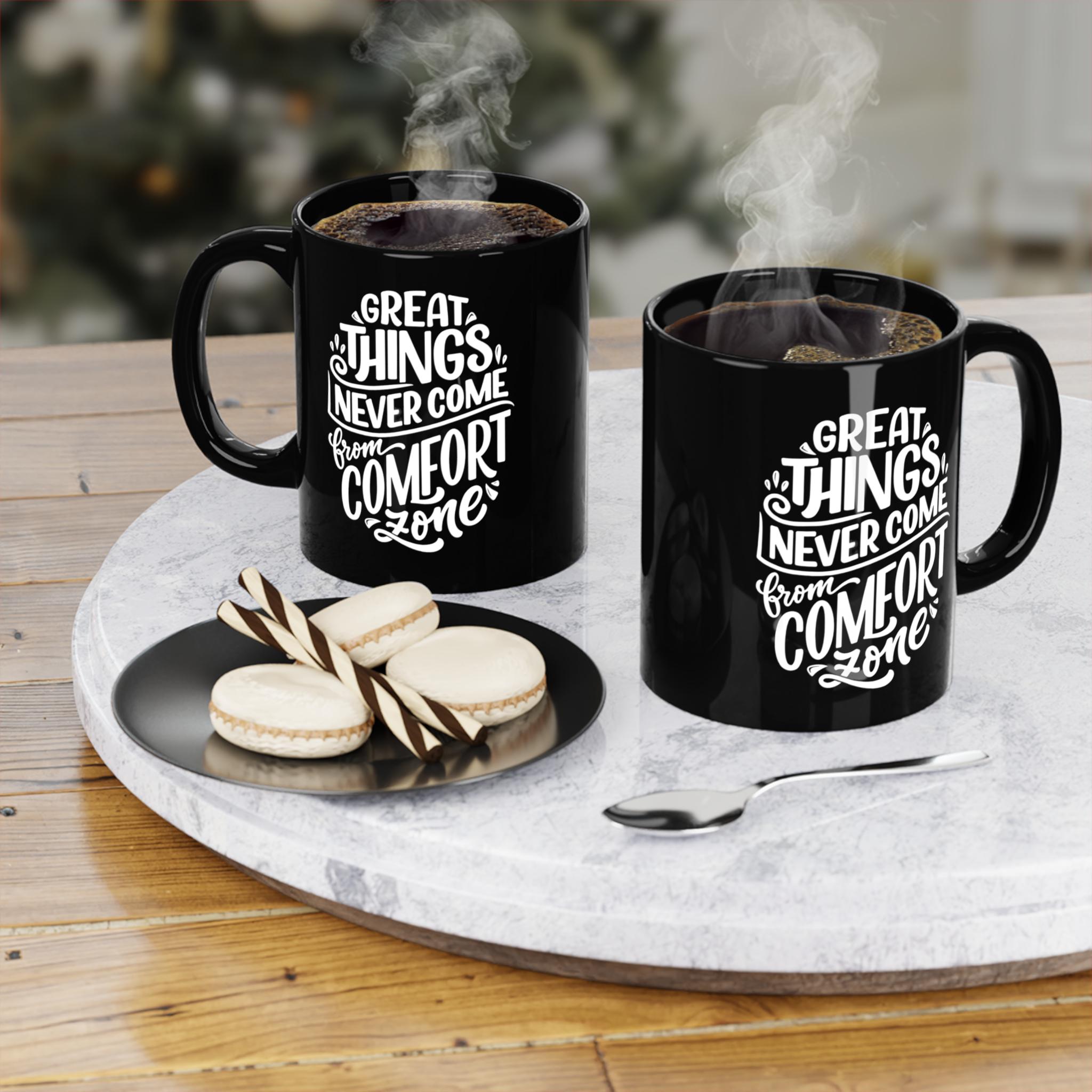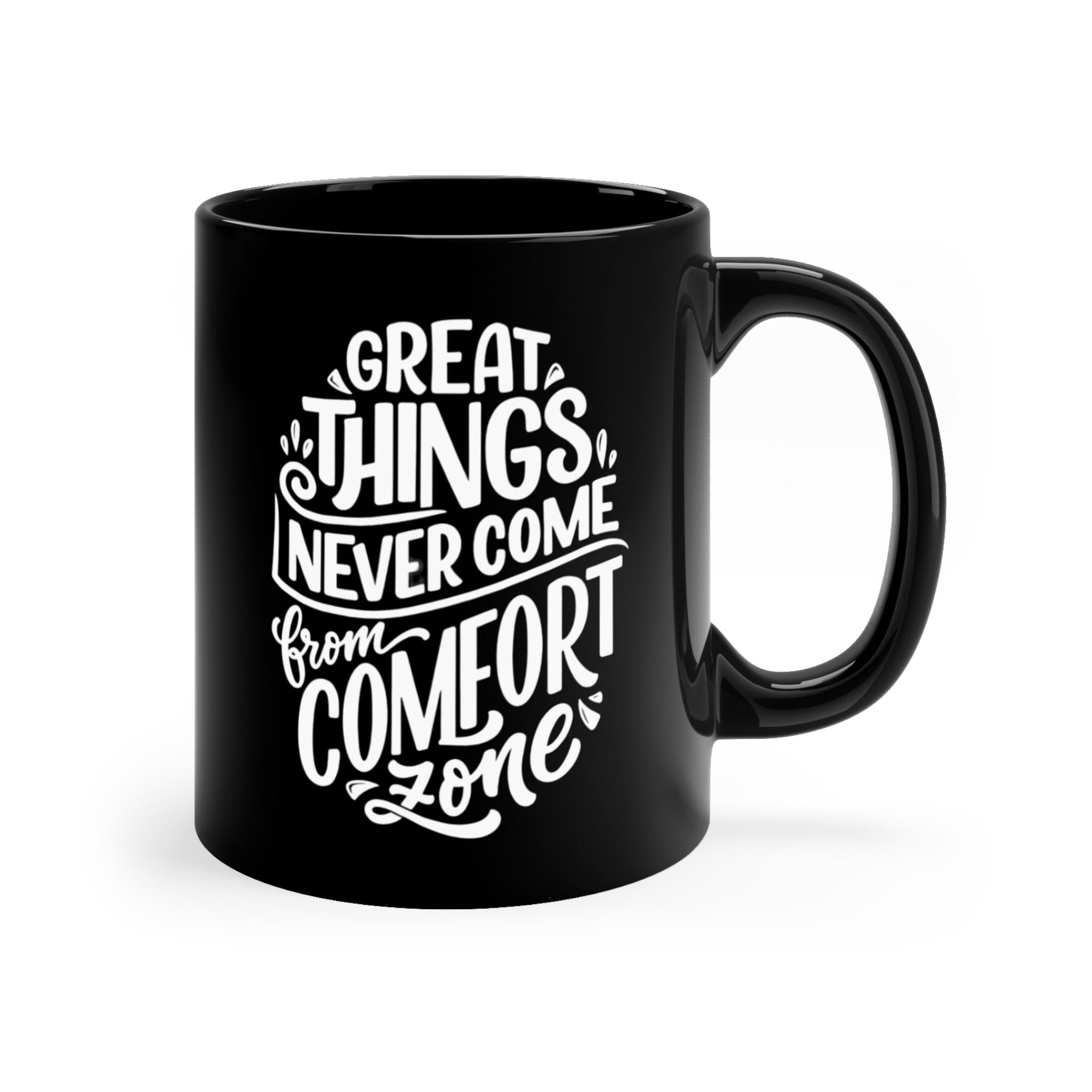 Great Things Never Come from Comfort Zone Black Coffee Mug, 11oz Ceramic