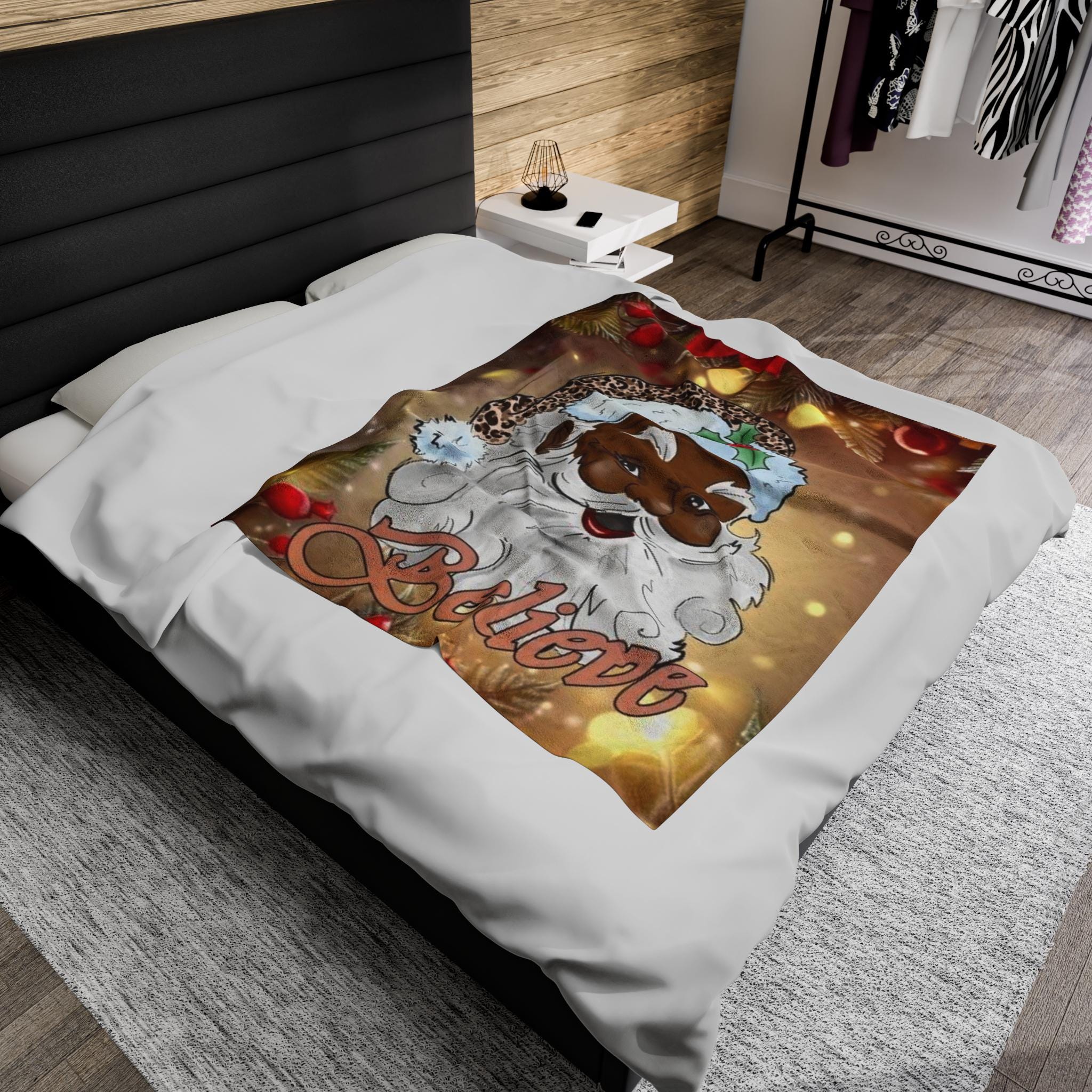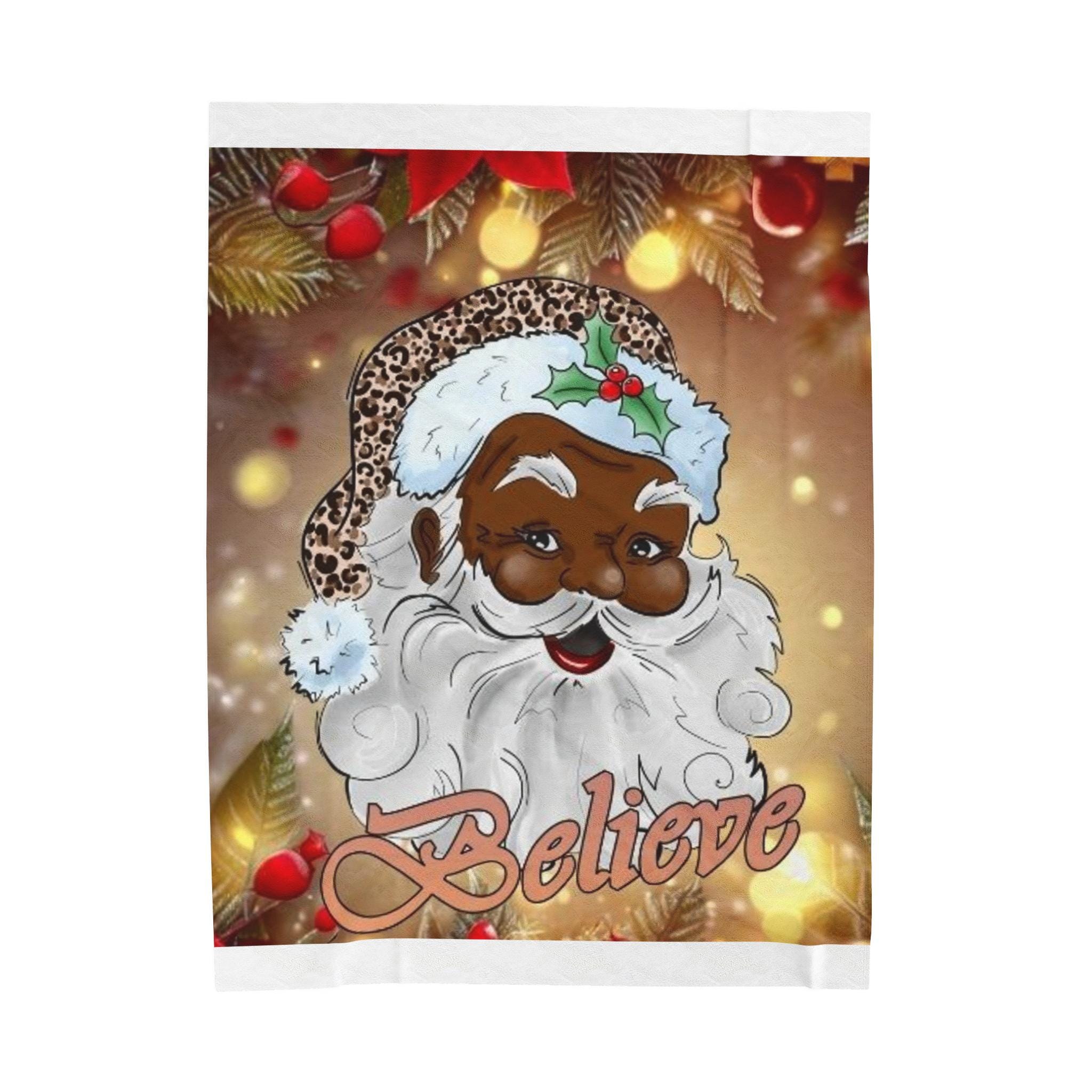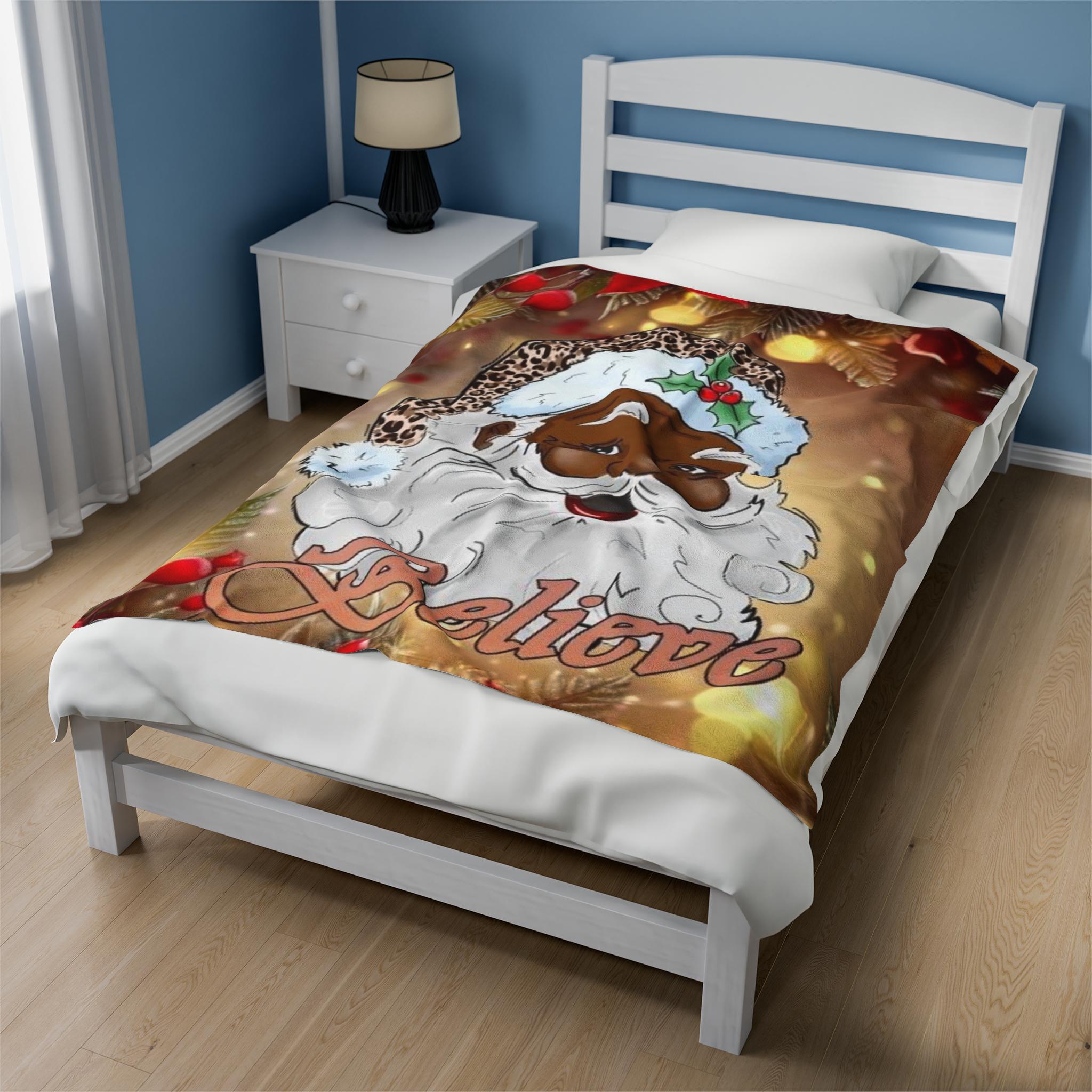 Velveteen Plush Blanket - Holly Jolly Black Santa, Blanta Clause, Holiday Throw, Christmas Gift, Festive Home Decor, Cozy Winter Blanket