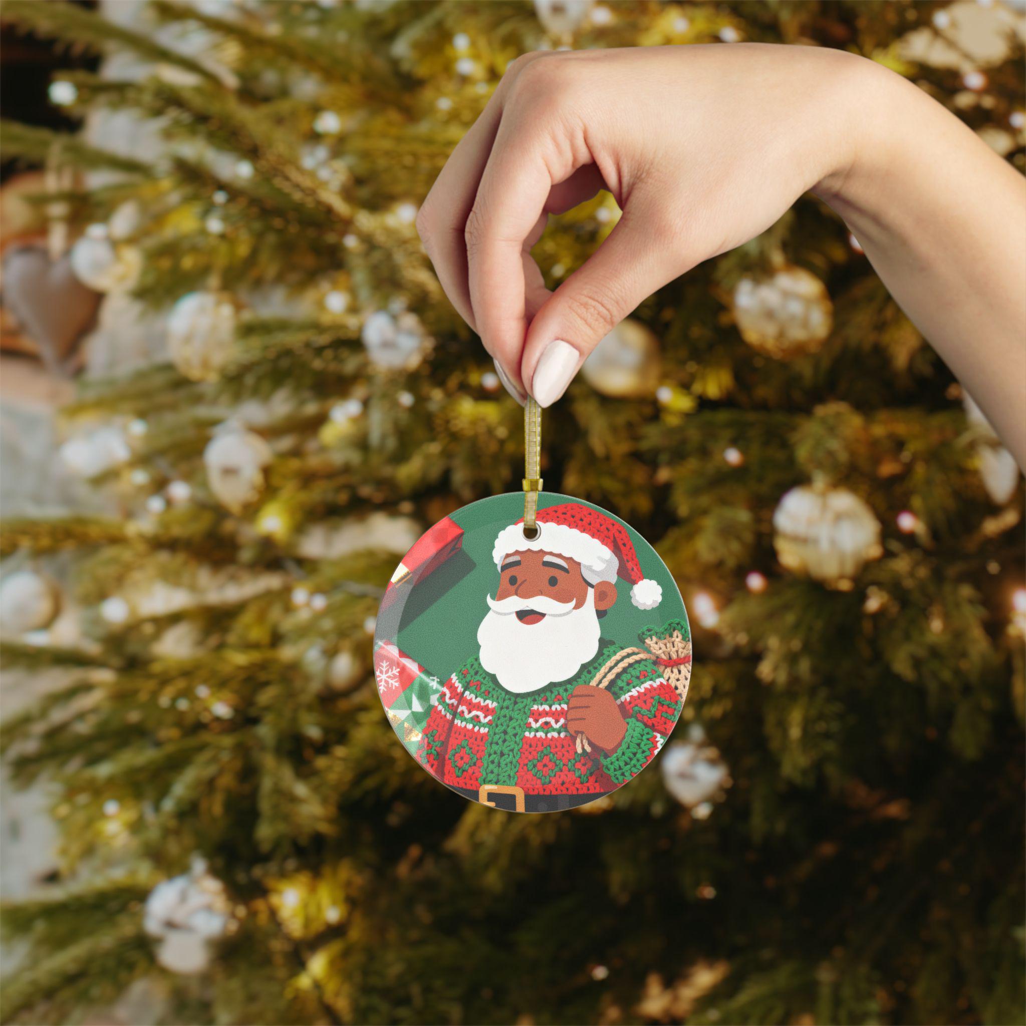 A hand-painted-feel glass ornament celebrating Latino Santa—bold, joyful, and ready to hang on tree or mantel. The rich, vivid print captures warm skin tones and festive details with crisp color and beveled edges that catch the lights. Lightweight but solid, this single-piece 3.5" glass ornament arrives with a gold ribbon and a snug gift box, making it simple to tuck into holiday traditions, family gatherings, or multicultural celebrations.