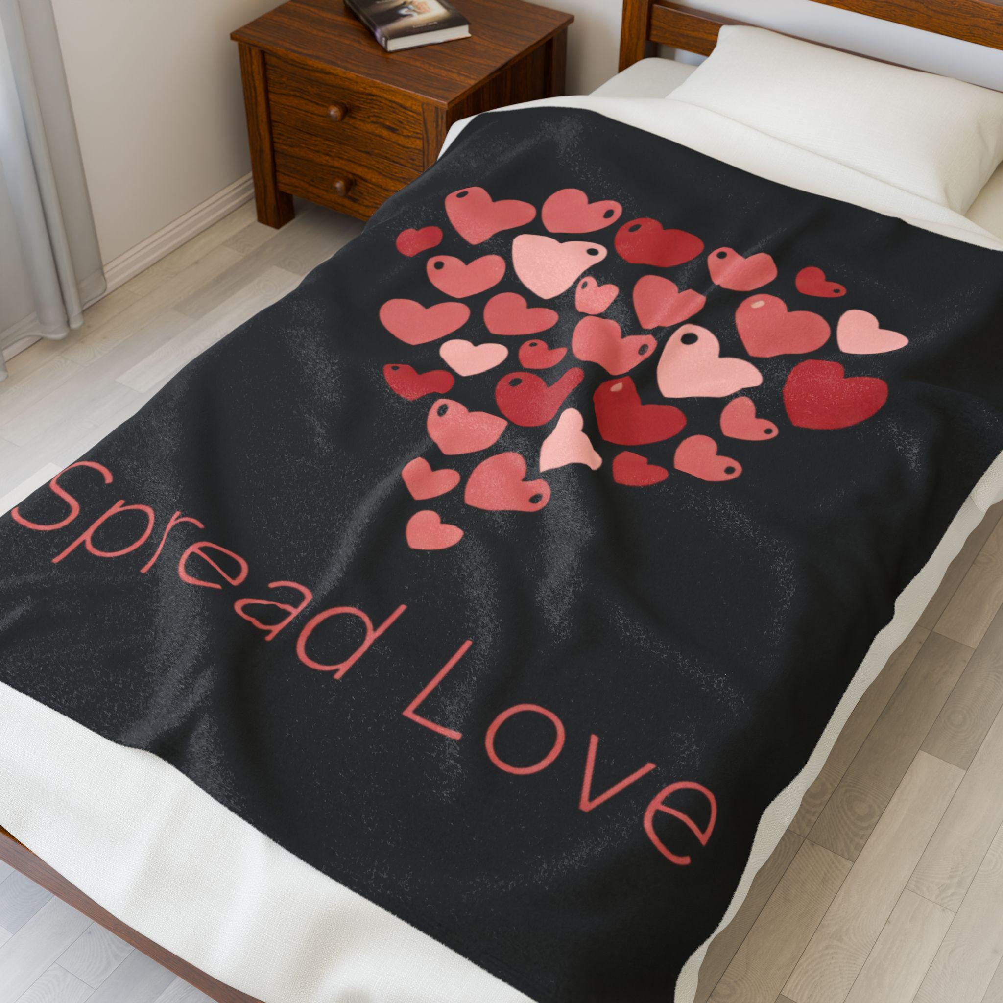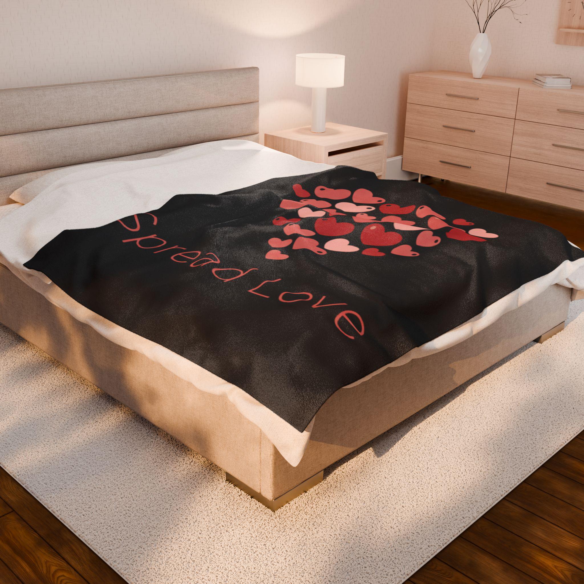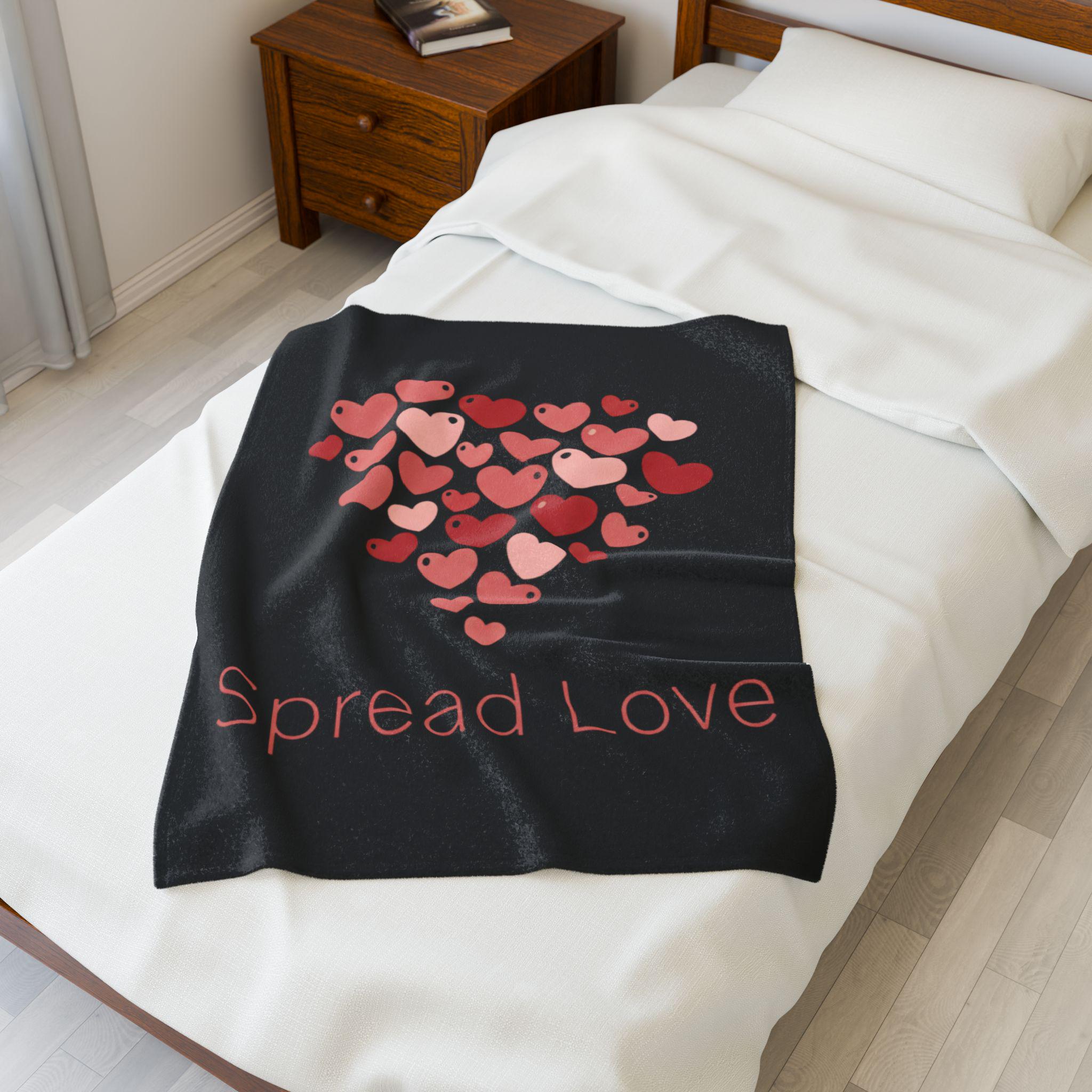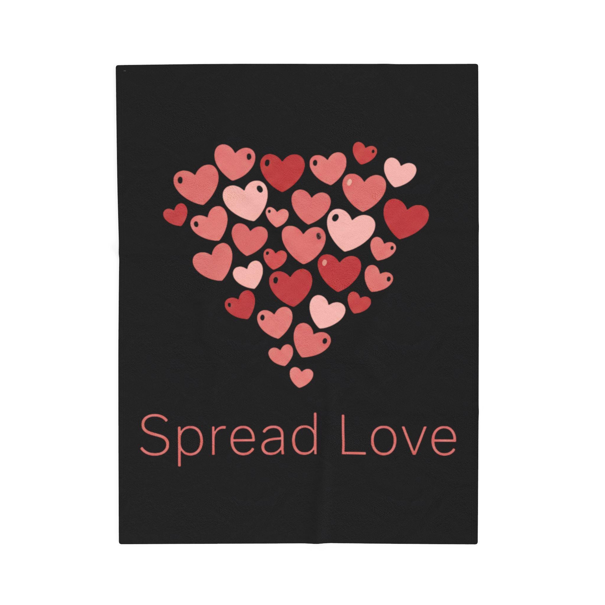 A soft, cozy velveteen blanket featuring a cluster of tiny heart motifs arranged into a gentle heart shape above a small, understated wordmark. The palette uses soft reds and pinks on a neutral white ground for a light, optimistic feel that reads as friendly and everyday — aligned with the Tiny Hearts Everywhere trend without heavy romance. Subtle, repeated hearts work as a wearable-at-home accent for layering on the sofa or adding a playful touch to a reading nook.
