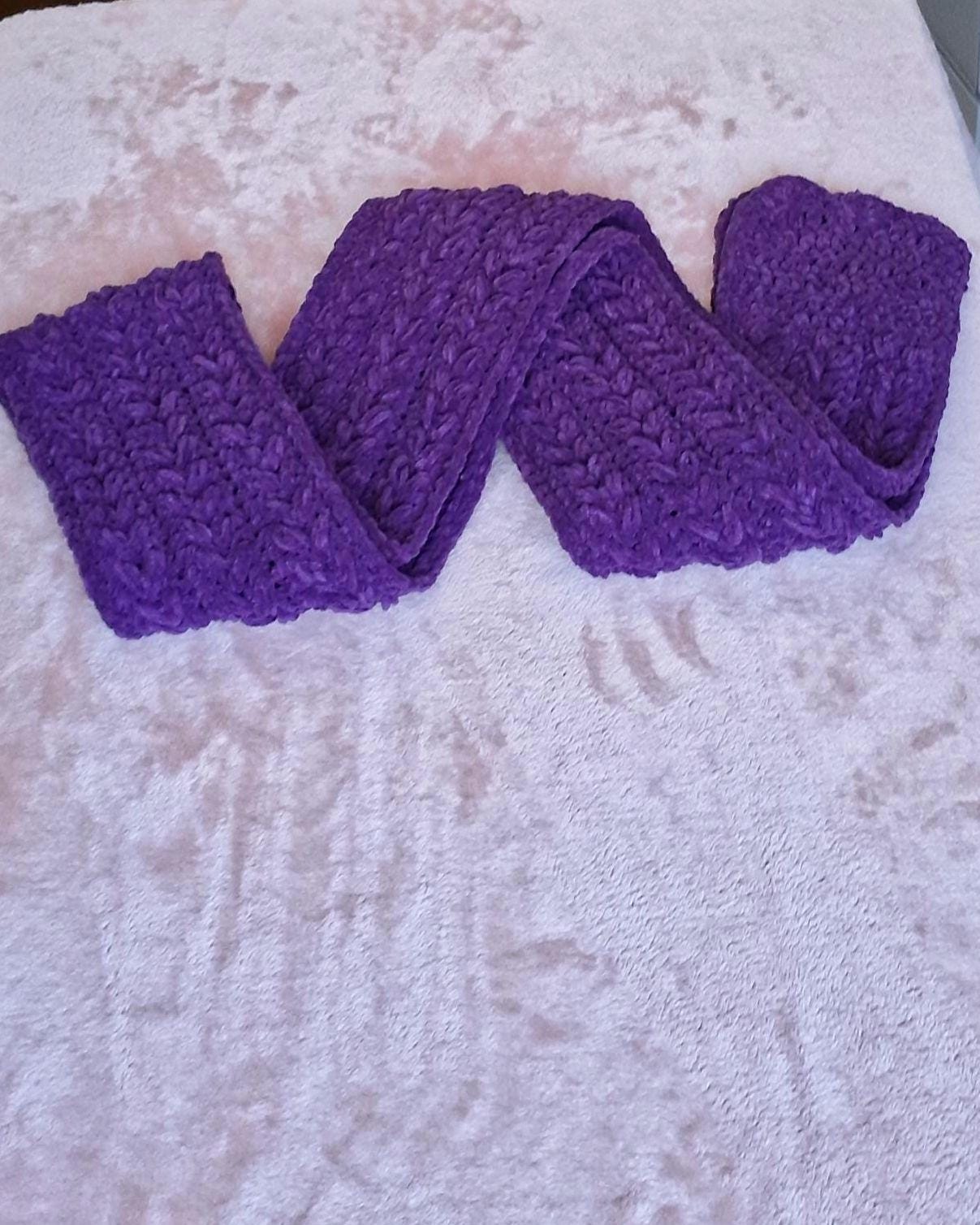 Pretty purple and plush! So soft and perfect for Valentines day and all winter long. Extra long and high quality baby blanket yarn.
