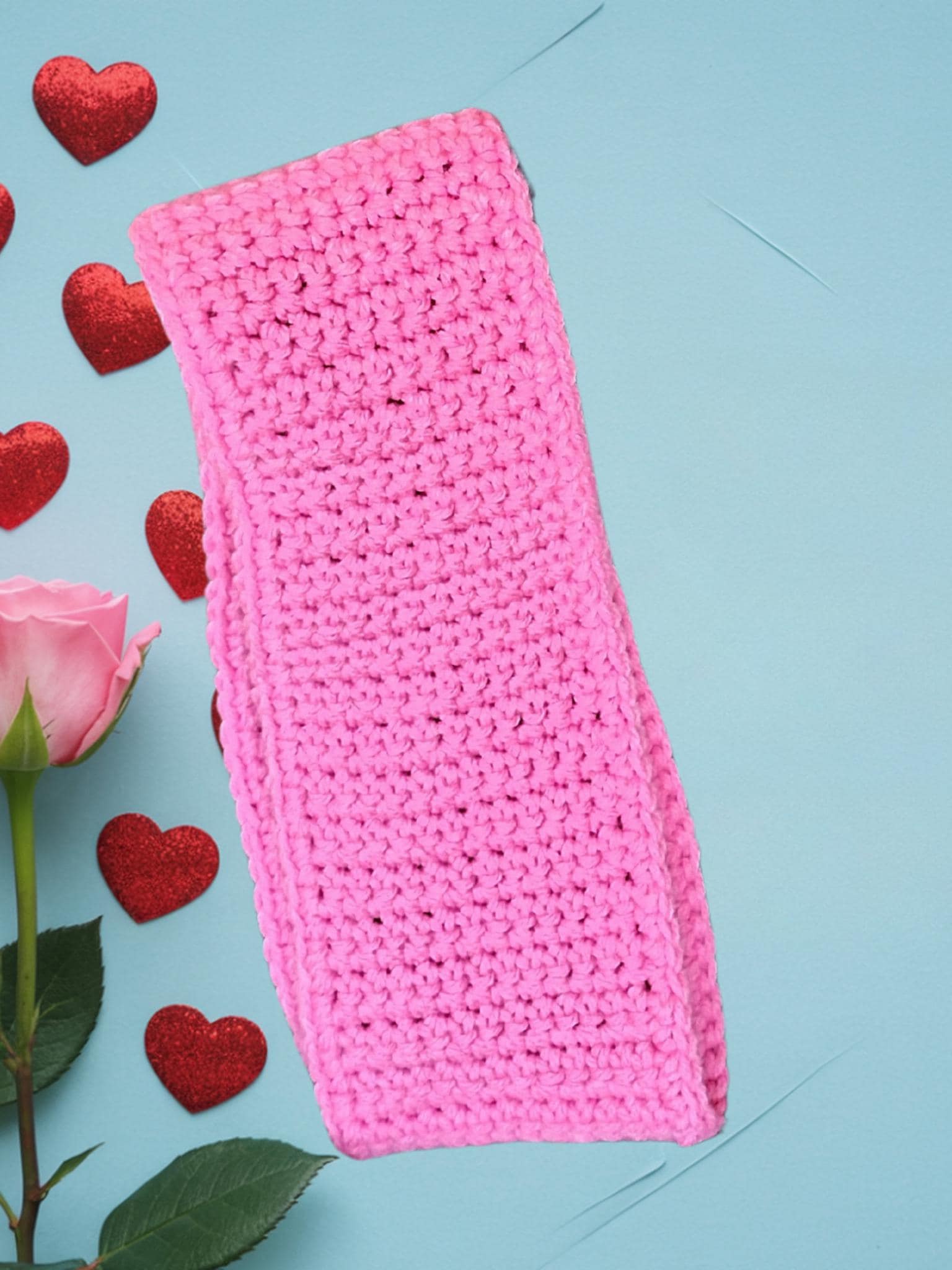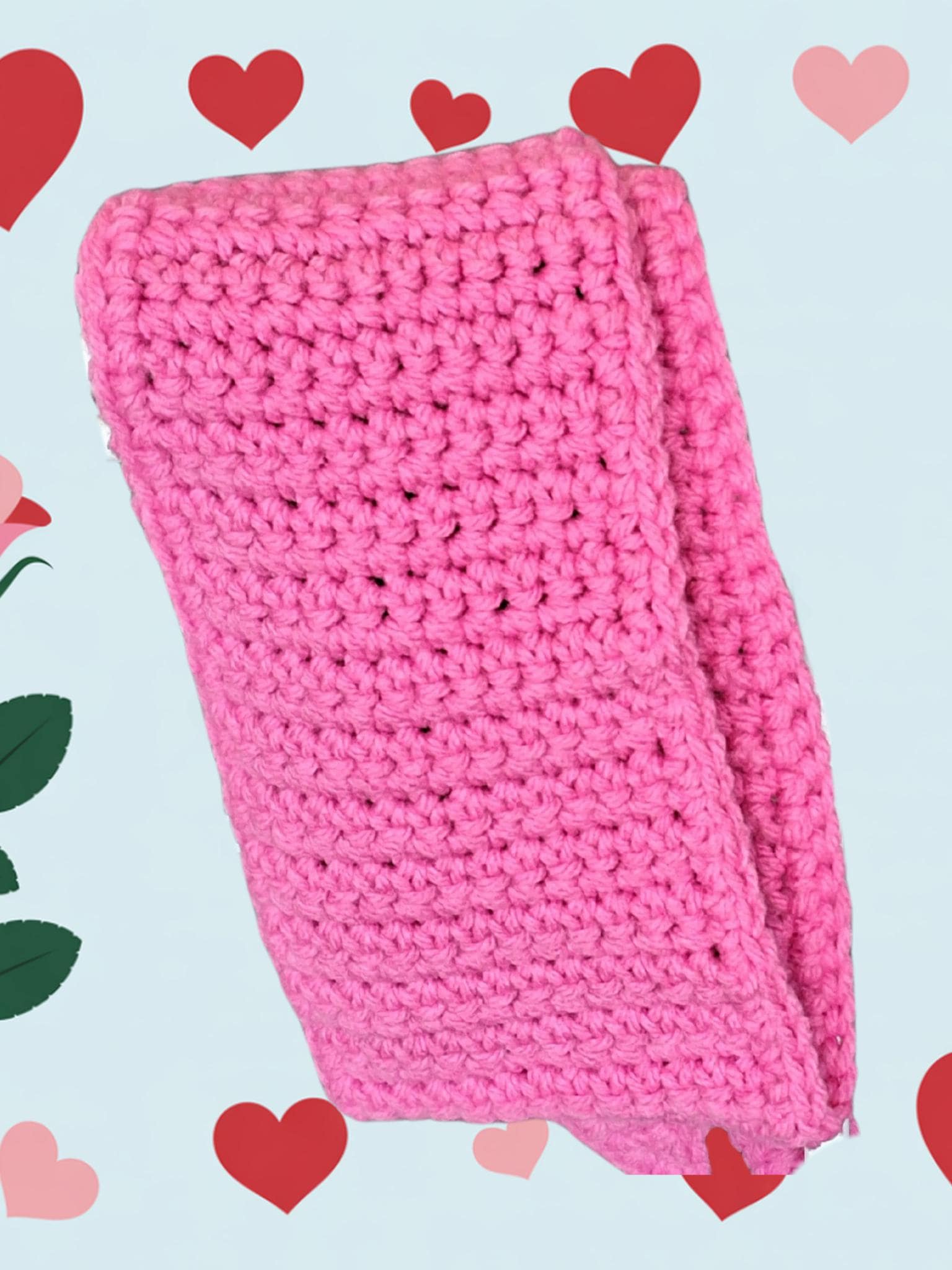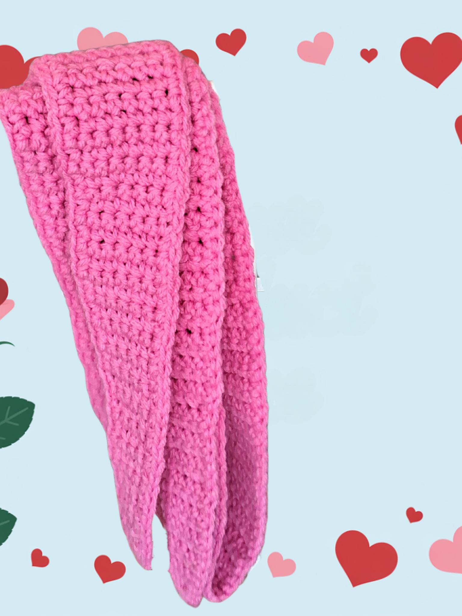 Soft acrylic yarn crocheted by hand in a hot pink show stopping pink.