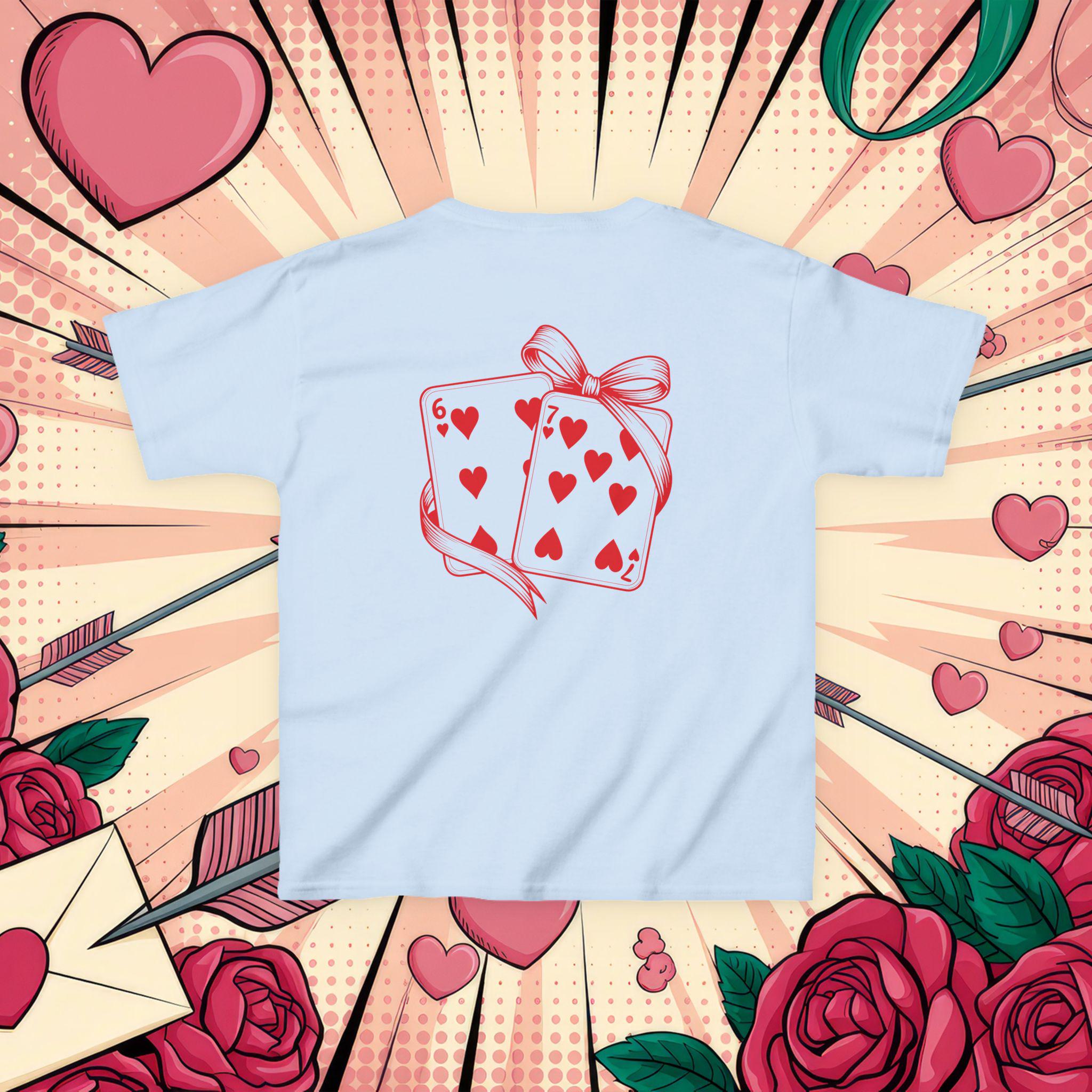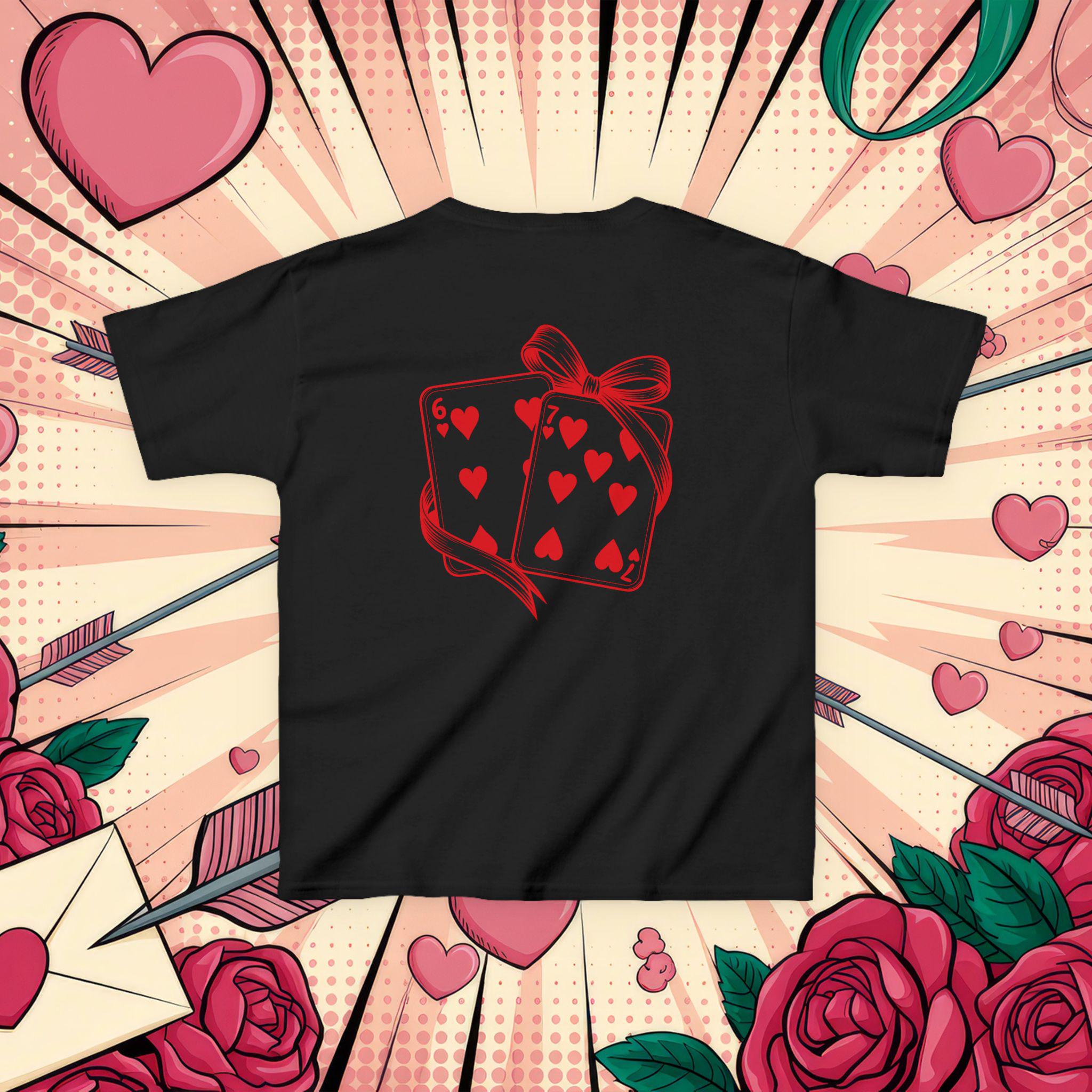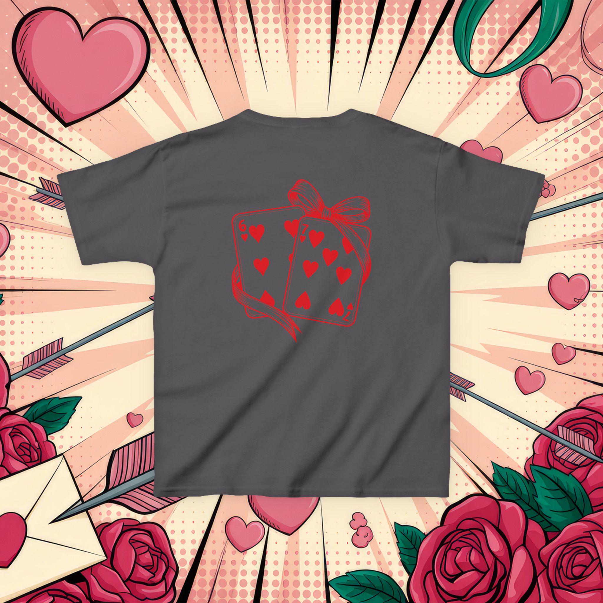 This kids tee brings playful charm to everyday wear with a sweet, hand-drawn card illustration wrapped in a ribbon. Lightweight but midweight cotton gives a soft, breathable feel that holds up to daily adventures and repeated washes. The classic crew neck and relaxed cut make it easy to layer or wear alone. Imagine a child heading out to a family picnic or a classroom party, proud to wear a shirt that feels comfy and looks delightfully whimsical — the heart-filled card motif adds a touch of cheer without being loud. Ethically sourced cotton and thoughtful construction (taped shoulders, ribbed collar, tear-away label) mean comfort and durability are built in, so the tee keeps its shape and stays comfortable through play, hugs, and every little celebration.