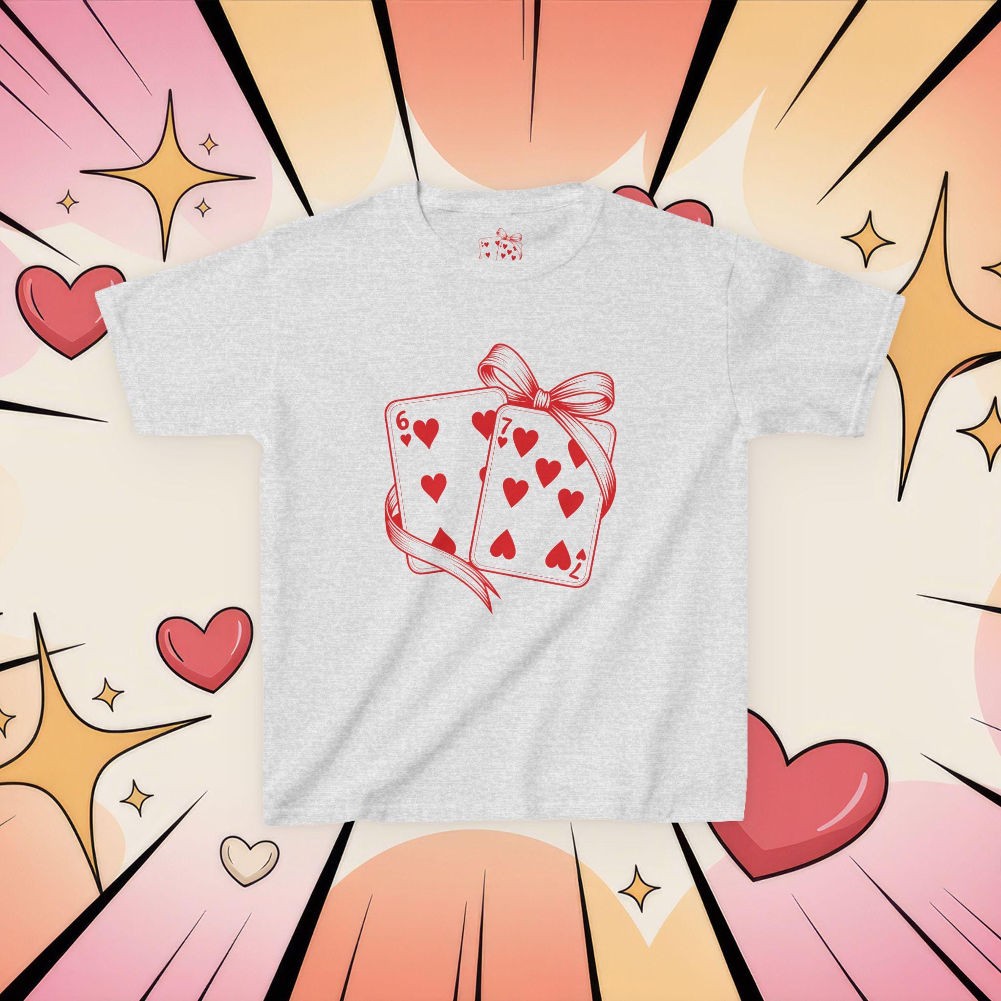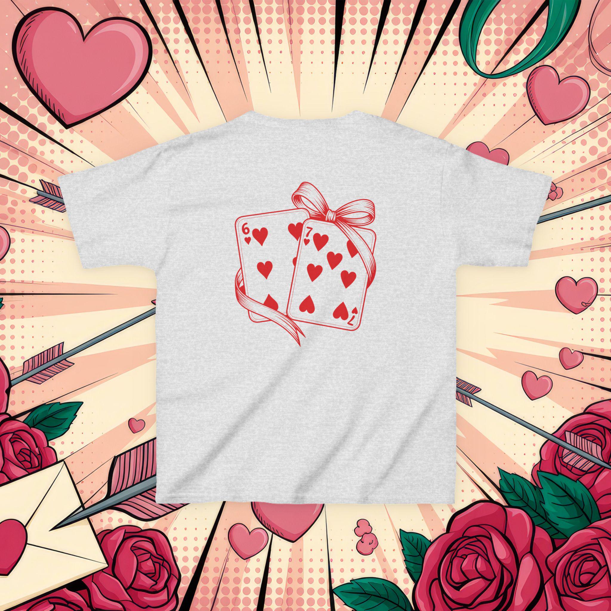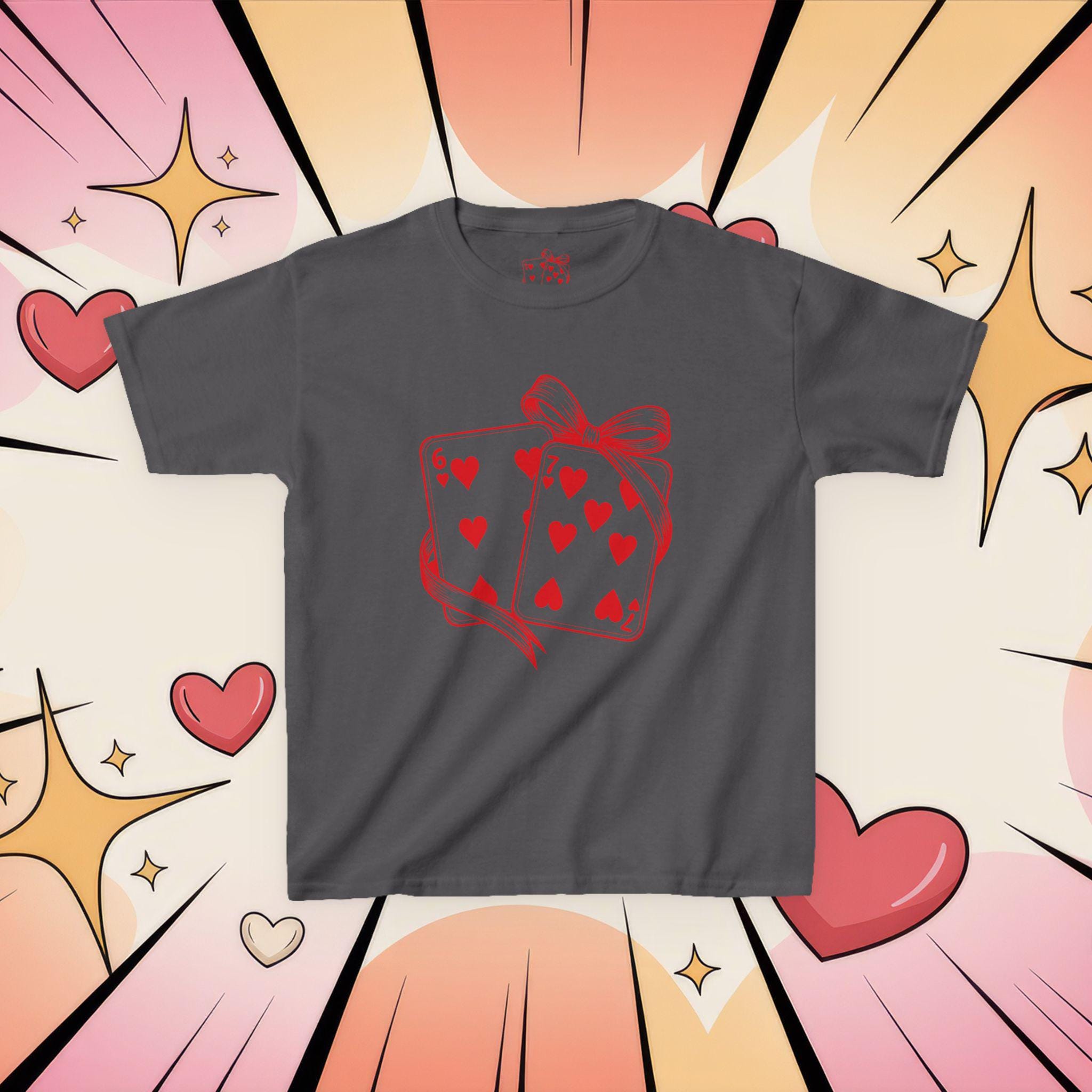 This kids tee brings playful charm to everyday wear with a sweet, hand-drawn card illustration wrapped in a ribbon. Lightweight but midweight cotton gives a soft, breathable feel that holds up to daily adventures and repeated washes. The classic crew neck and relaxed cut make it easy to layer or wear alone. Imagine a child heading out to a family picnic or a classroom party, proud to wear a shirt that feels comfy and looks delightfully whimsical — the heart-filled card motif adds a touch of cheer without being loud. Ethically sourced cotton and thoughtful construction (taped shoulders, ribbed collar, tear-away label) mean comfort and durability are built in, so the tee keeps its shape and stays comfortable through play, hugs, and every little celebration.