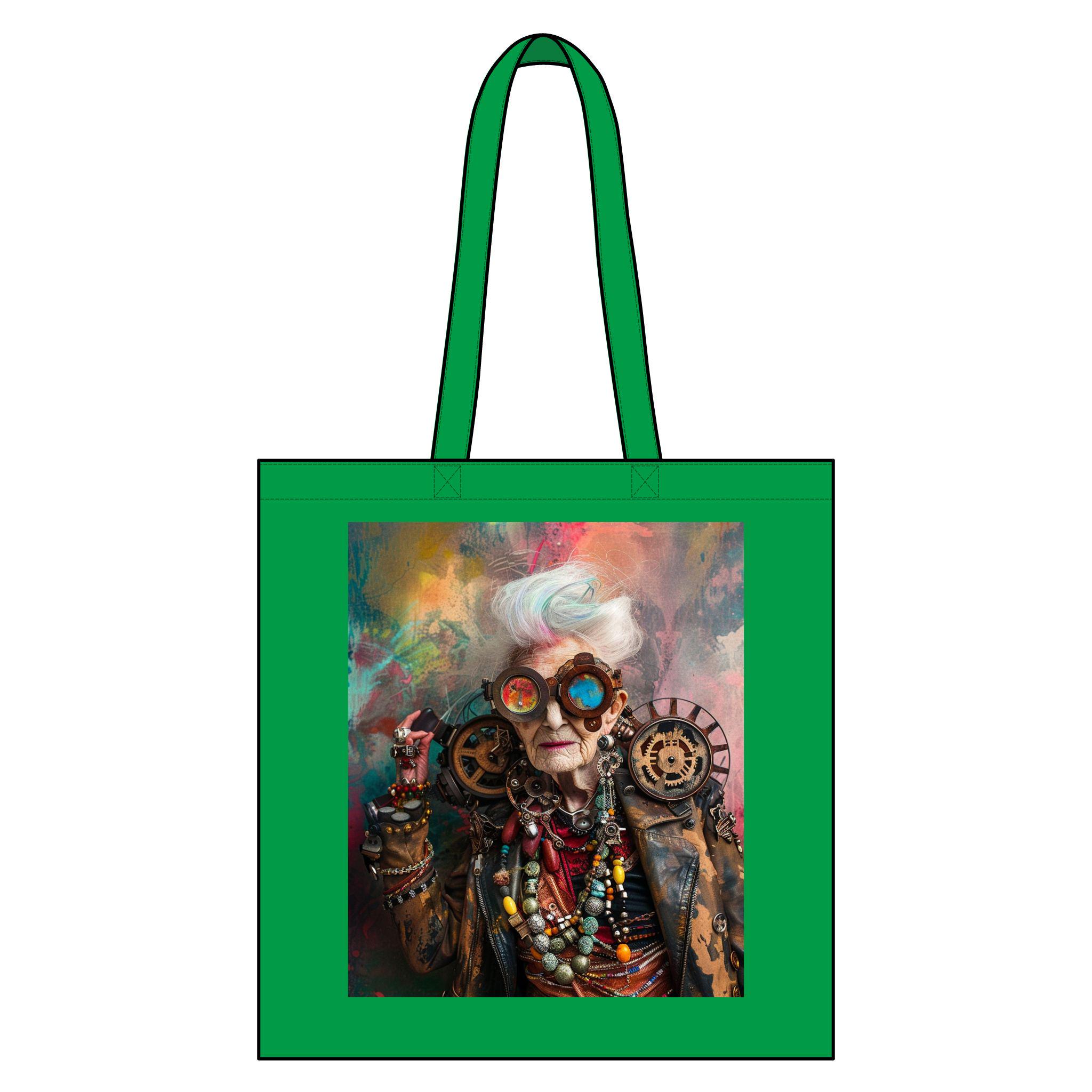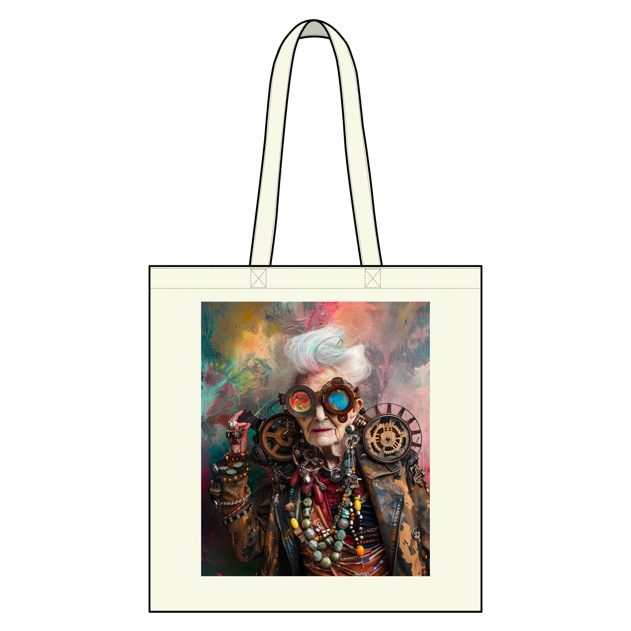 Meet your new favorite market companion: the Steampunk Mary Lou Canvas Tote. Featuring Mary Lou in full steampunk glory—goggles, gears, leather, color, and charisma—this bag celebrates bold style, creativity, and the kind of personality that only gets better with time. It’s perfect for shoppers who appreciate humor, artistry, and a dash of Victorian punk flair.